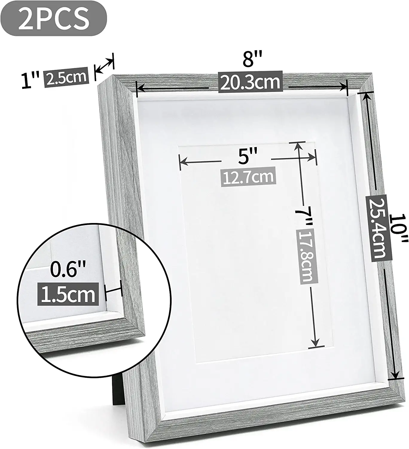 Afuly 8×10 Picture Frames Grey Displays 8×10 with Mat 5×7 without Mat, Rustic Wood Grain Photo Frames, Set of 2, Gifts for Family. This modern style frame is available in 3 colors (Black, White, Grey) and 3 sizes (4 x 6 inch, 5 x 7 inch, 8 x 10 inch) for you to choose, the simple and elegant modern style can easily match any home style. This is the best choice for your home decoration.