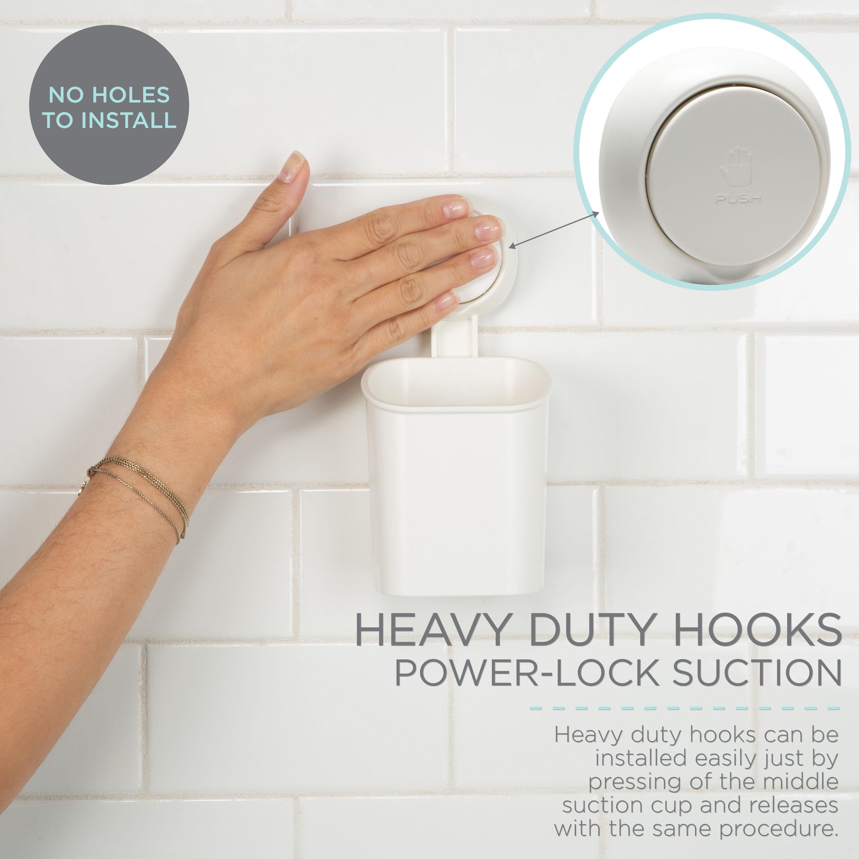 Keep your toothbrush and toothpaste at hand with the Bath Bliss gel-suction toothbrush holder caddy. A convenient caddy with gel power suction can be placed on any smooth surface within your bathroom or shower wall, strong enough to hold up to 10 pounds and perfect caddy size for your necessities. Easy no tools installation, simply clean and dry the surface, position holder and press center firmly. The gel-suction design works on ceramic tile, glass, metal and wood. In order to remove the caddy from the wall, must place a credit card between suction cup and wall. Perfect for holding toothbrushes, toothpaste and any small bath accessories that need a place to be stored!