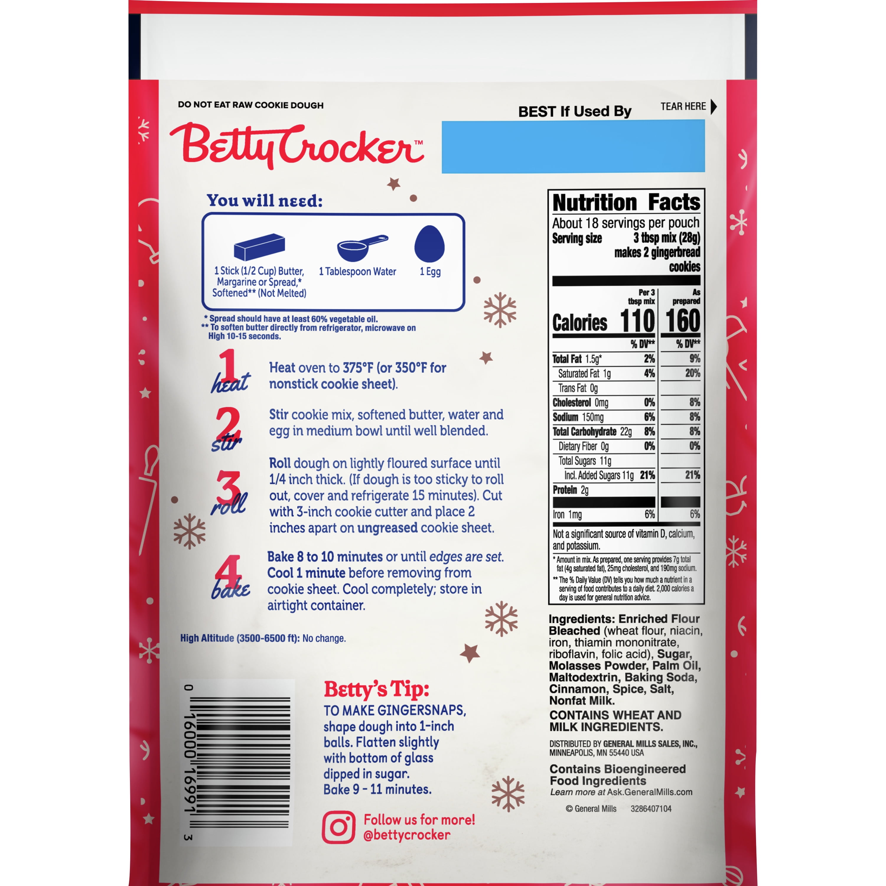 Betty Crocker Gingerbread Cookie Mix helps you make delicious fresh out of the oven cookies that everyone will love. It goes from bowl to oven in minutes for that home baked cookie experience.