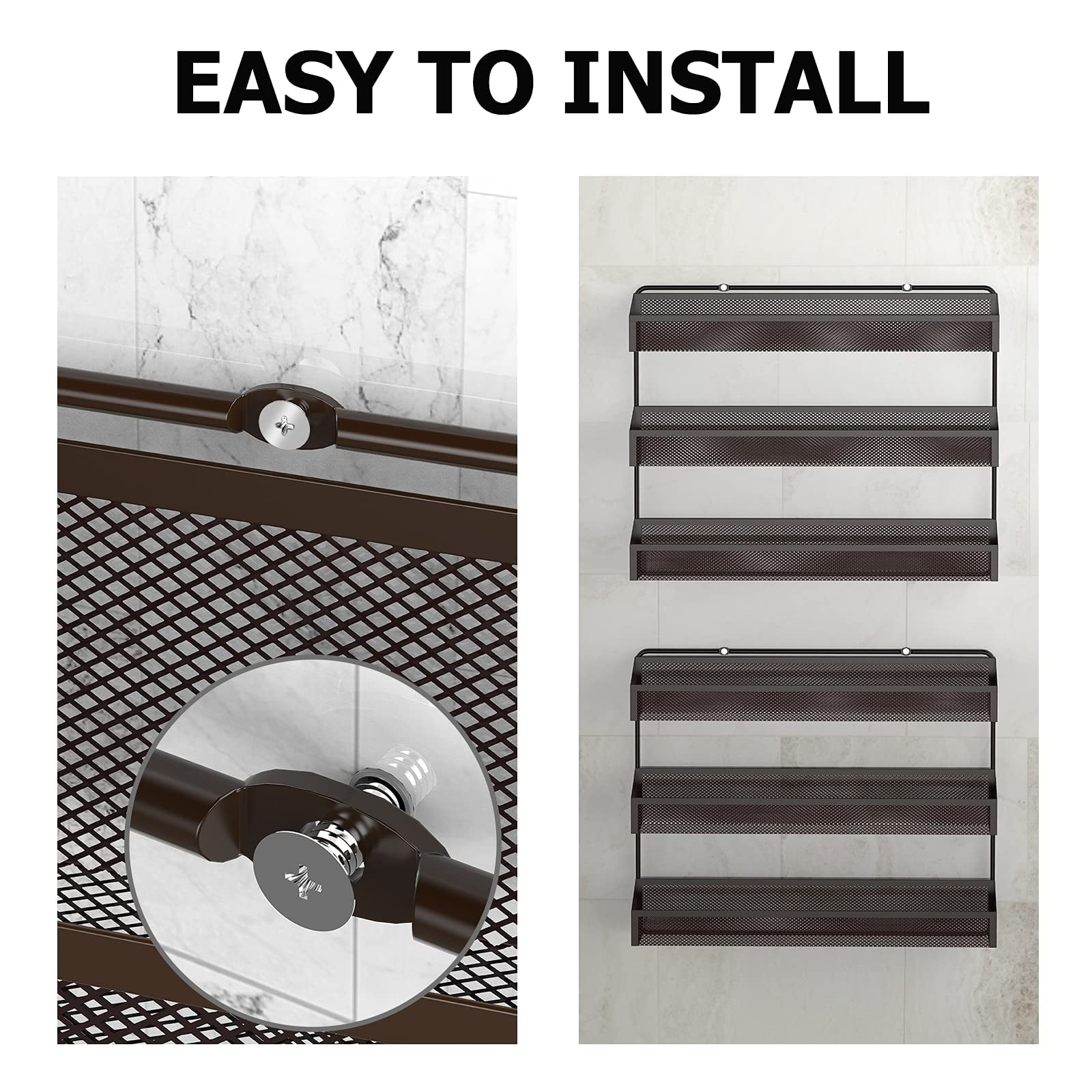 - QUICK & EASY MOUNTING – The spice rack can sit flat on the countertop for quick and easy access, or you can mount it on a wall or cabinet door. Hardware included, installing this wall mounted spice rack will be a breeze.