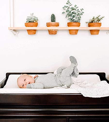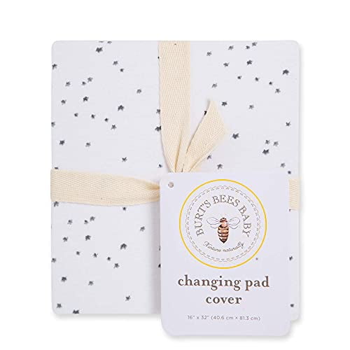 Jump on the organic band wagon and pick up this "not so basic" basic for your nursery. Made from 100% organic cotton, this changing pad cover is gentle and natural on your sweet babe’s sensitive and extra porous skin. Gender neutral design with little stars – the perfect gift for the "What’s it gonna bee" baby!Dimensions (Overall): 32 inches (L) x 16 inches (W) Suggested Age: 0-24 Months Weight: .35 pounds Package Quantity: 1 Sustainability Certifications: Global Organic Textile Standard Certified Material: Organic Cotton Fiber Care & Cleaning: Machine wash