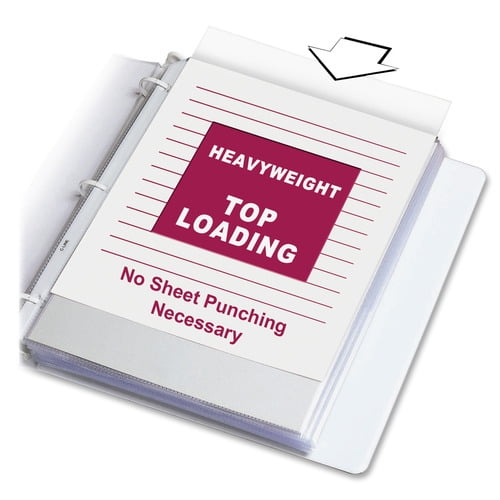 Sheet protectors offer a top-loading design, being sealed on three sides. No punching of sheets is necessary. Load the sheet while the protector remains in the binder. Sheet protectors fit standard three-ring binders. Polypropylene material offers safe, archival quality, no photocopy-transfer protection. Strong, reinforced binding edge prevents tears with heavy use.