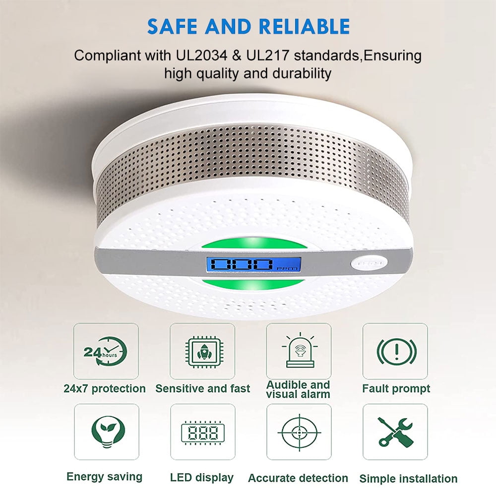 Advanced Sensor Technology:This Beinou smoke and carbon monoxide detector designed with 2 in 1 photoelectric and electrochemical sensor to achieve real-time detection of smoke and carbon monoxide leakage, and send out instant alarm, ensuring complete safety and save your home and family from any potential danger