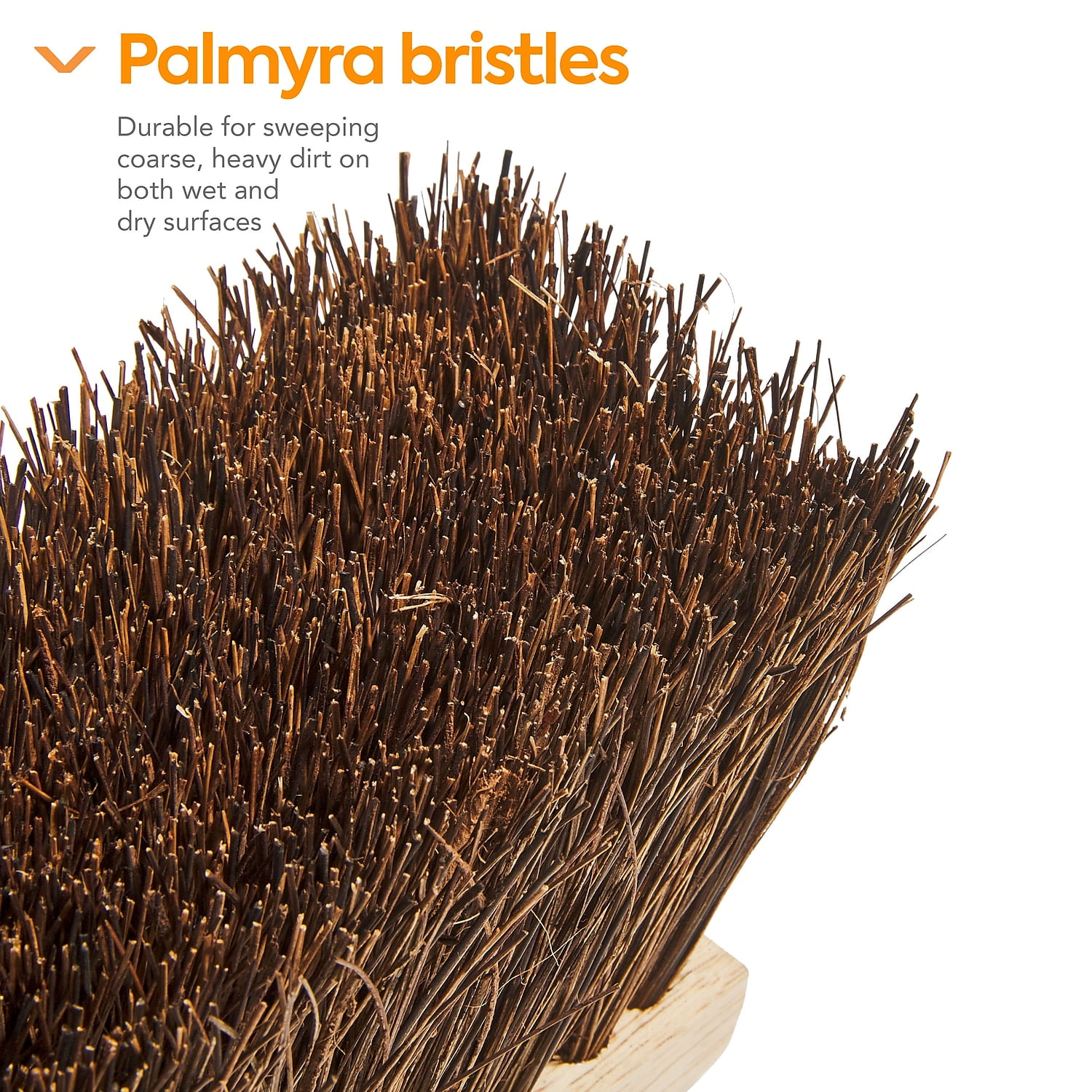 - Stiff bristles provide durability for sweeping coarse, heavy dirt on both wet and dry surfaces.