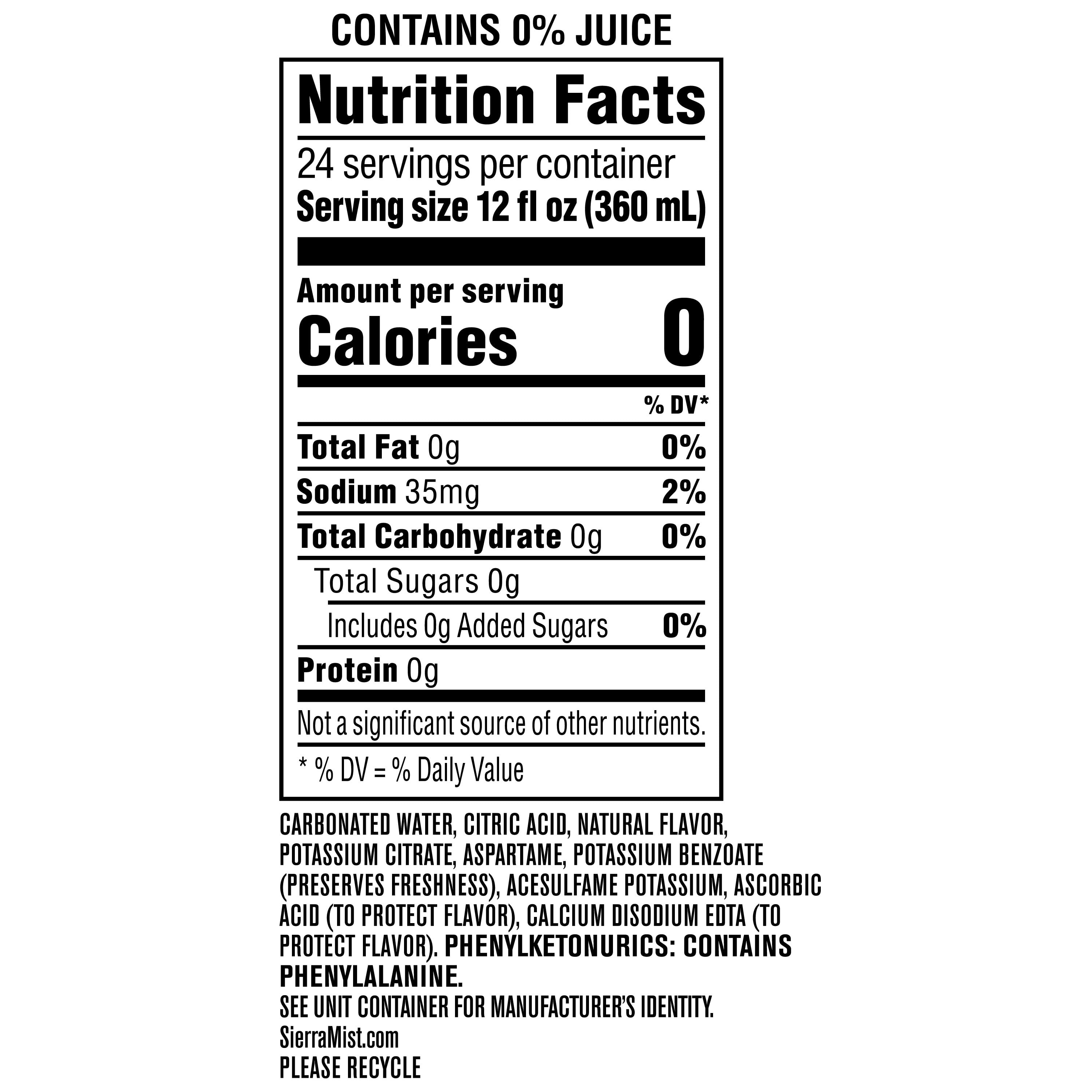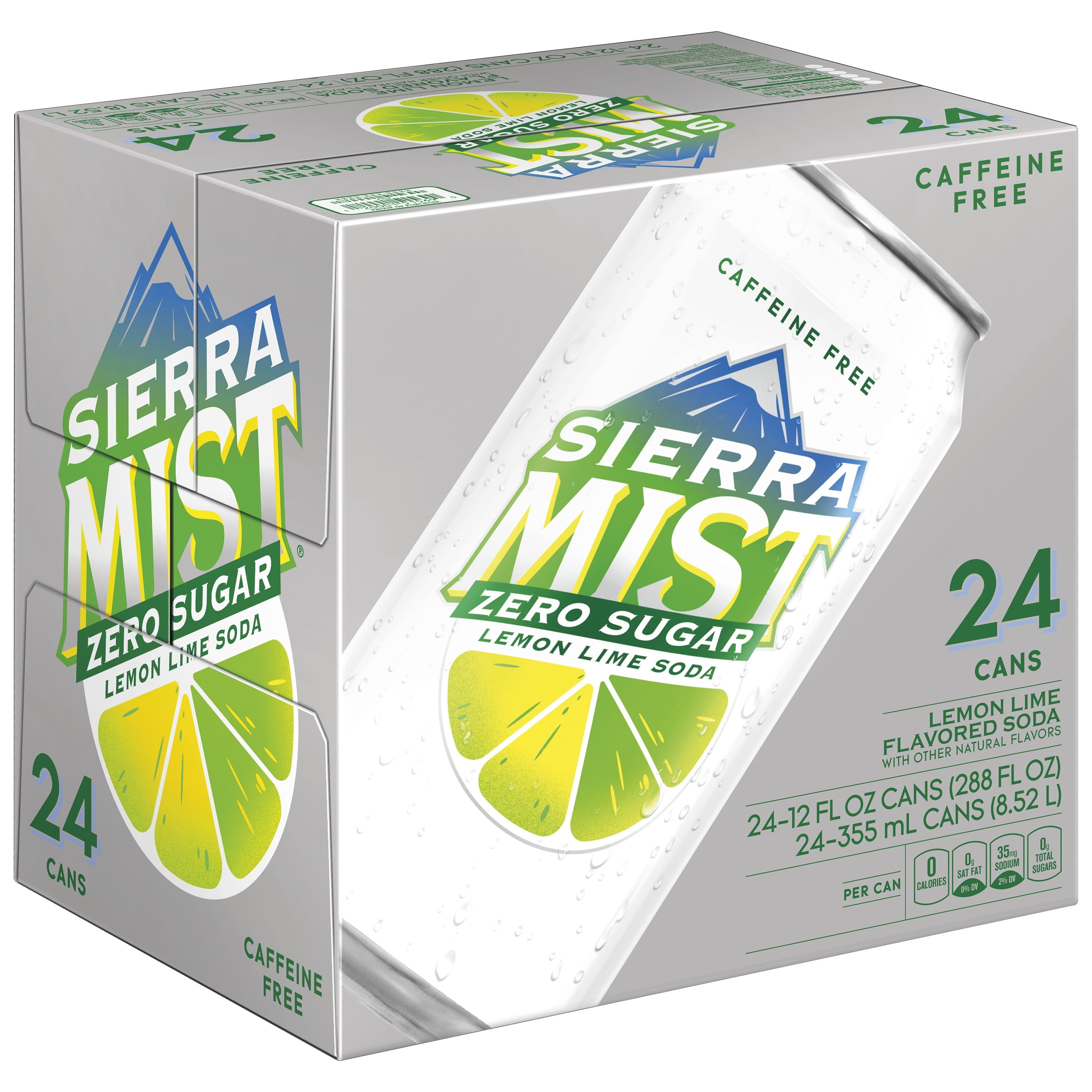 Diet Sierra Mist Lemon Lime Soda Caffeine Free Soda Pop, 12 oz, 24 Pack Cans