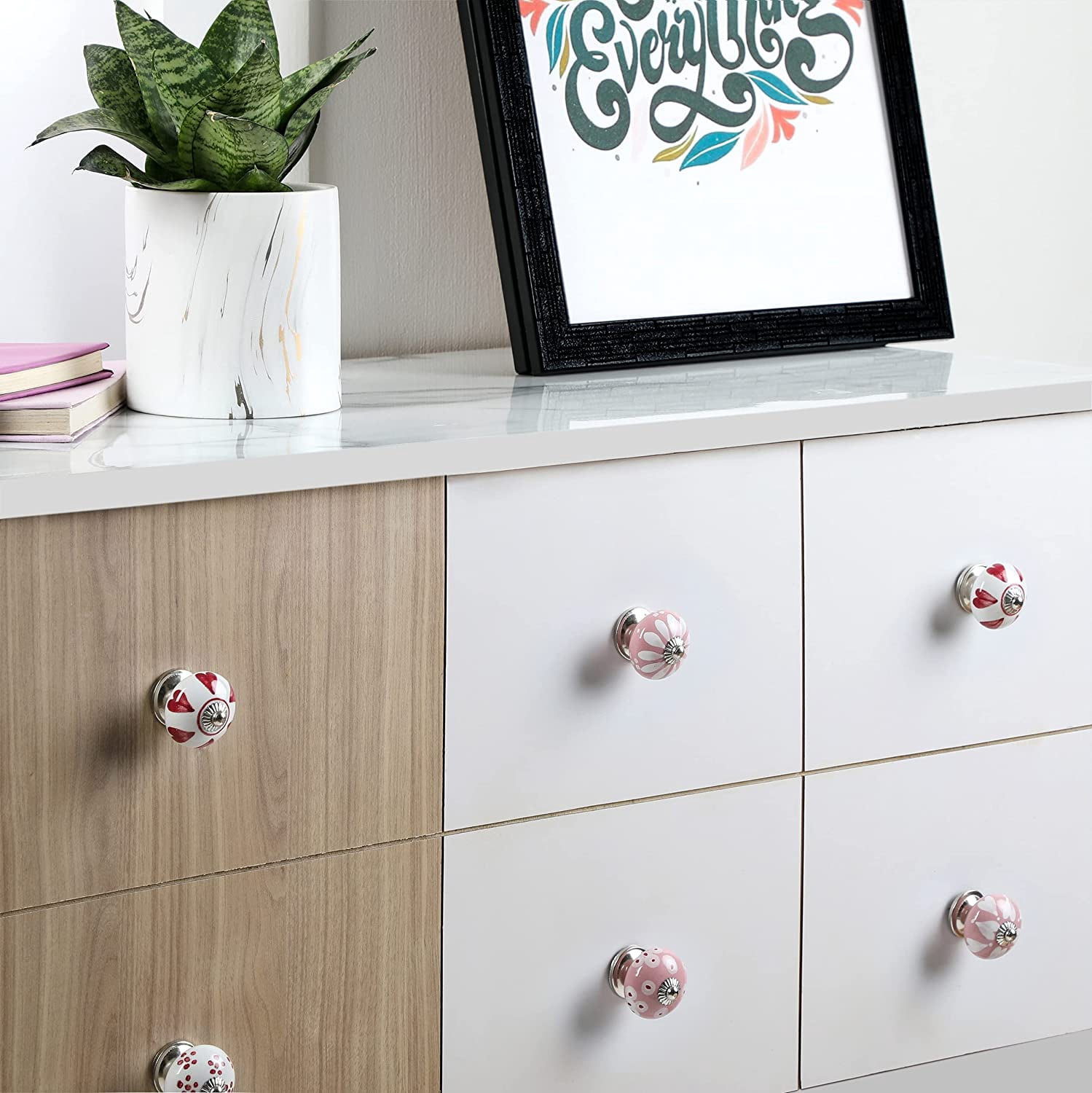 These ceramic knobs can be used in your office, home furniture and it will enhance the look of place and furniture as well. These are best for your cabinet, dresser, drawer, wardrobe, daughters dresser etc. These knobs are always fashionable and easy to install. Item Dimension: 1.5x2inch