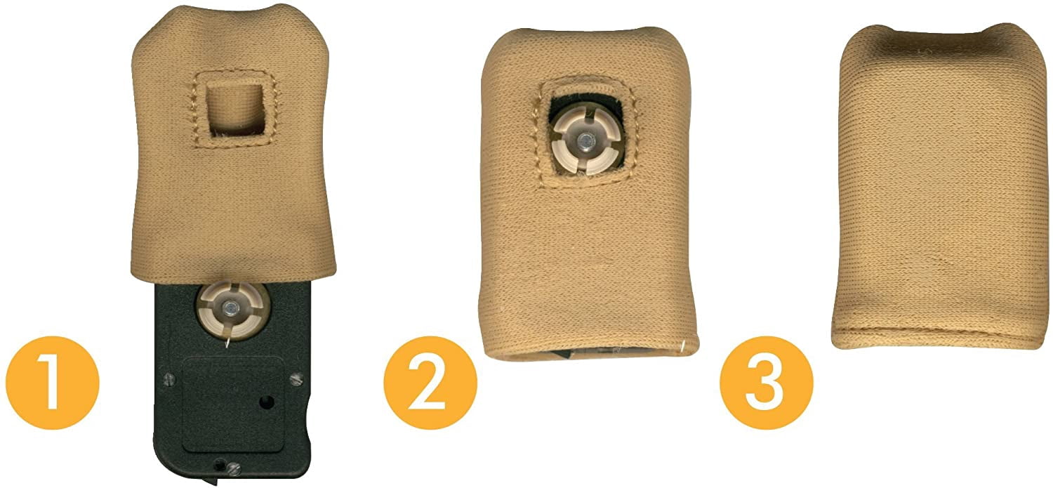- Form-fitting spandex fits over your hearing instrument, adding comfort & protection from dirt, sweat, moisture, and wind noise