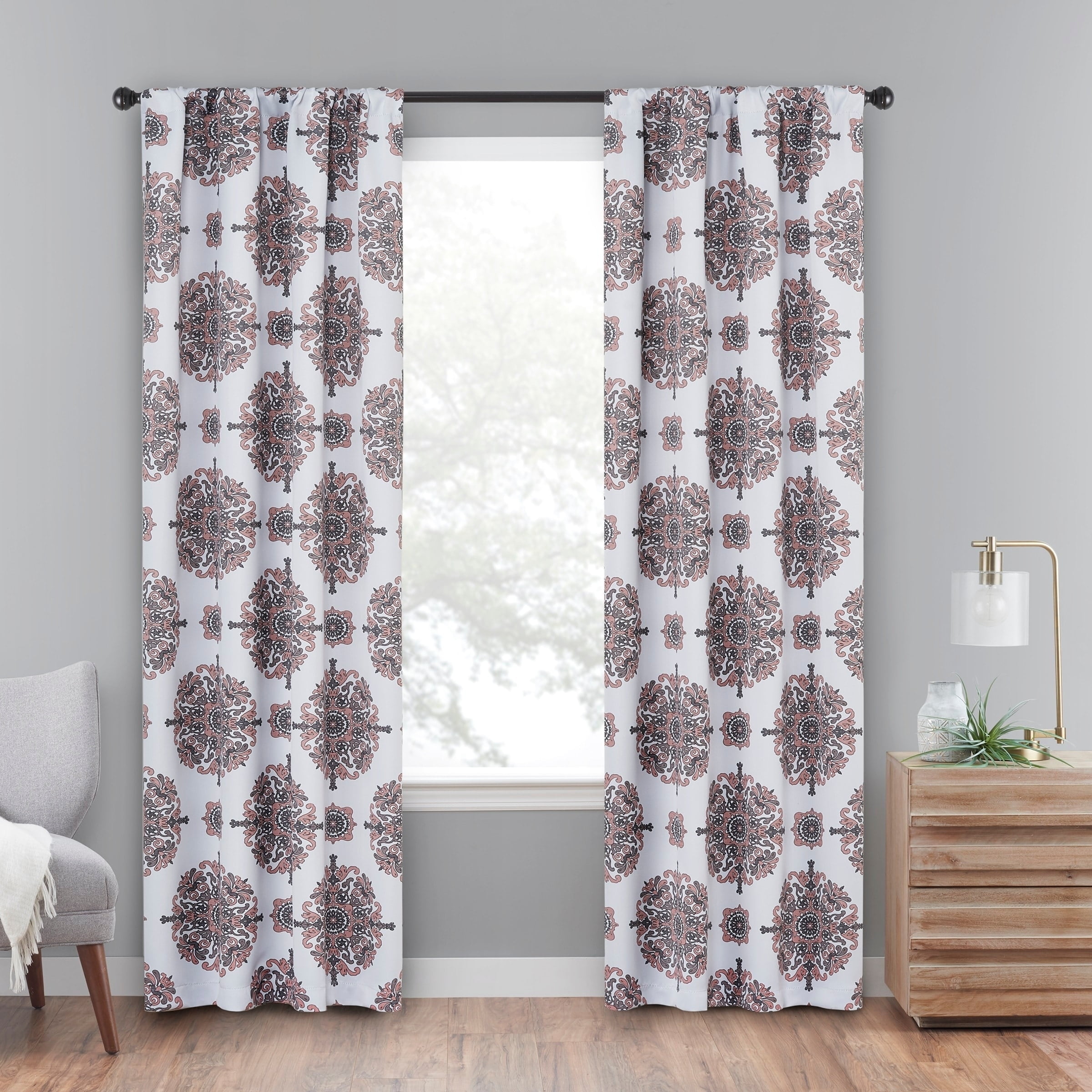 Redecorate in a snap with Eclipse Olivia Thermaweave® room-darkening window curtain panel. These beautiful panels offer a superior blend of window fashion design and light blocking technology for any décor. This medallion print curtain is woven with energy saving yarns so that the technology blends seamlessly with fashion fabrics. Each Olivia window panel measures 37 inches wide by your choice 63, 84, or 95 inches long. 3 inch rod pocket accommodates up to a 1.50 inch curtain rod. Curtain rod sold separately. Sold as a single panel. 100% Polyester. Machine wash gentle cycle, tumble dry, do not bleach. Imported.Woven with energy saving yarns. Measures 37 inches wide. 100% Polyester. Sold as a single panel. Machine Washable.