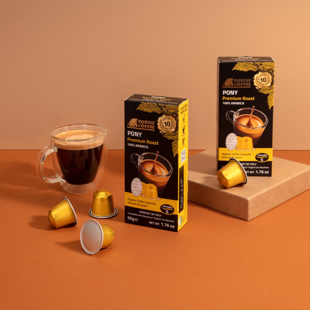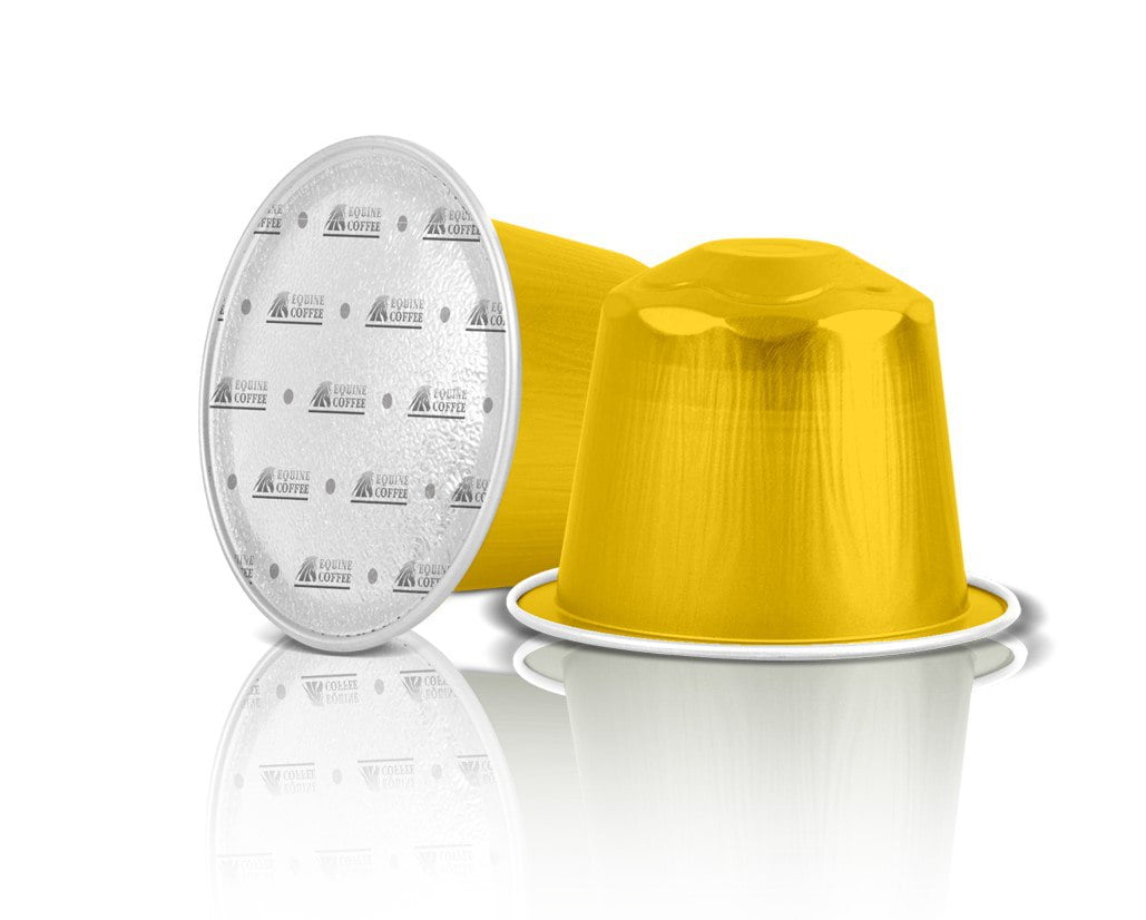 Equine Pony Nespresso Pods, Intensity 6, Aluminum Capsules, Pony Blend Notes: There’s nothing like that fresh, intoxicating aroma of a premium cup of Equine Coffee. Each capsule is sealed to preserve aromas and deliver a more intense espresso experience and a richer, smoother, and creamier foam. They offer stable brewing, an exact pull, and more consistent interaction with Nespresso machines. And with 100% Arabica with a SMOOTH & SWEET feel, each capsule delivers the high-quality coffee sourcing that consumers expect from Equine and certified Organic USDA. Espresso Capsules, Compatible with Nespresso Original Line, Hundred Aluminum Capsules, Intensity 6, This is our Lightest Roast