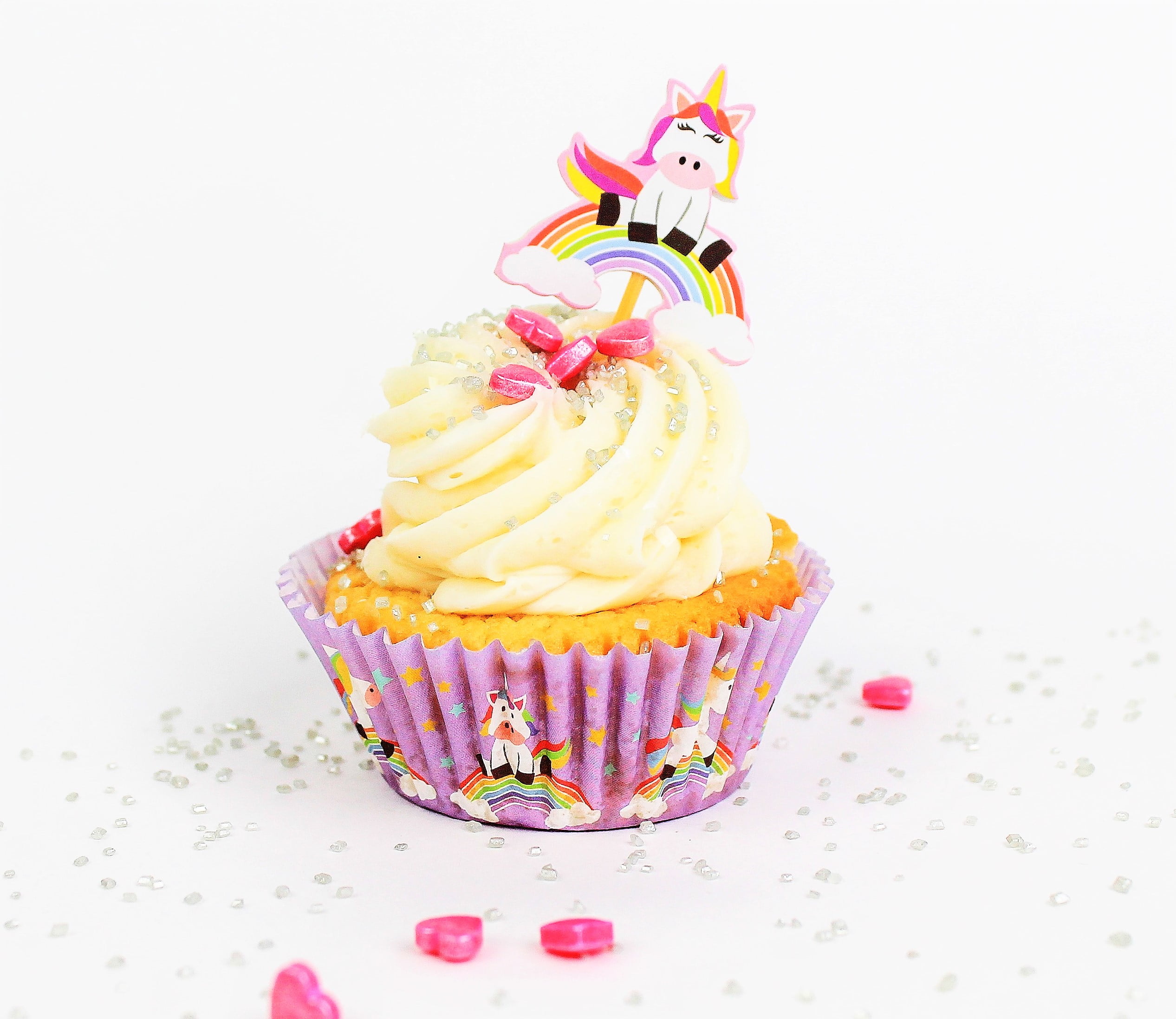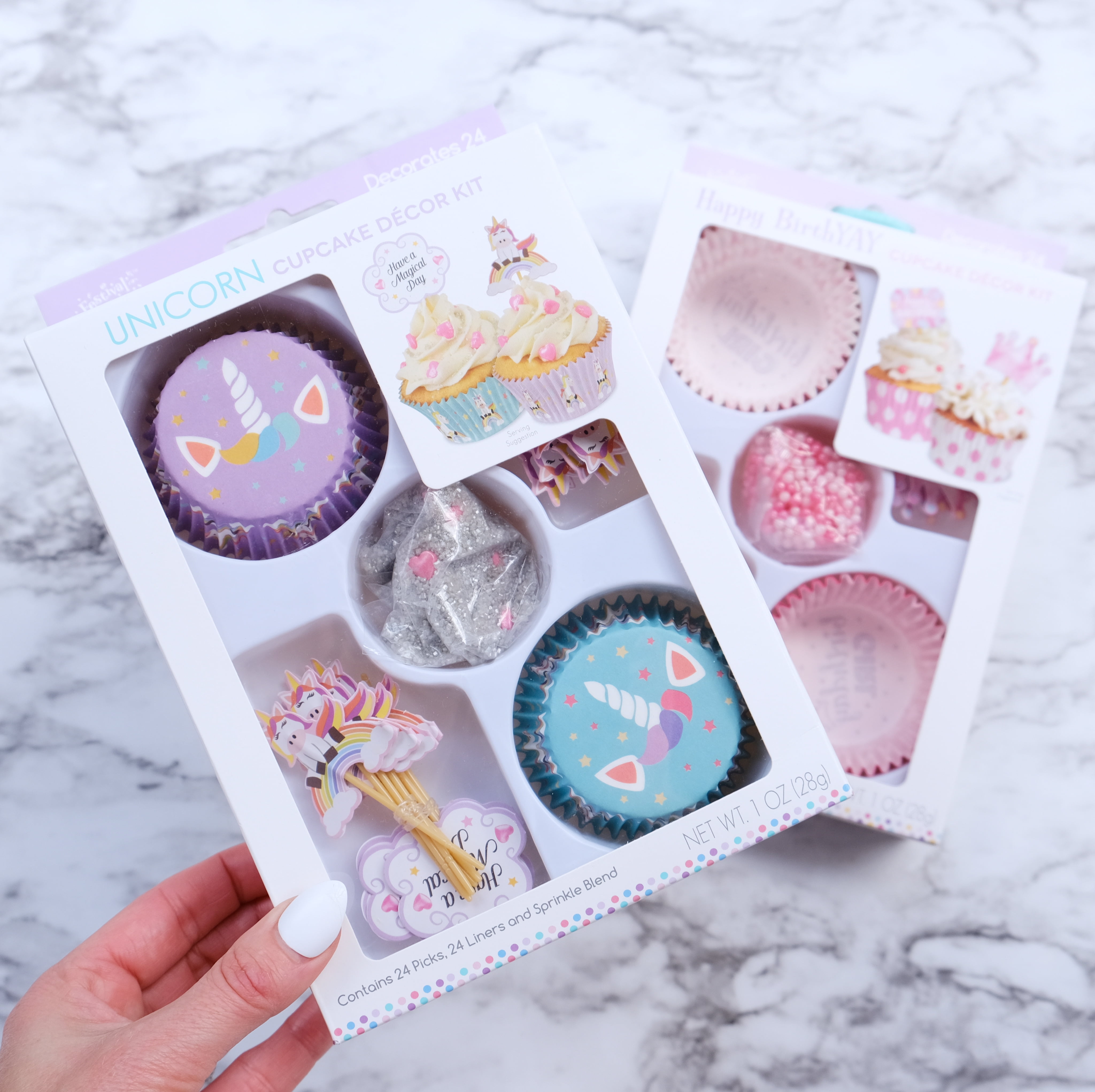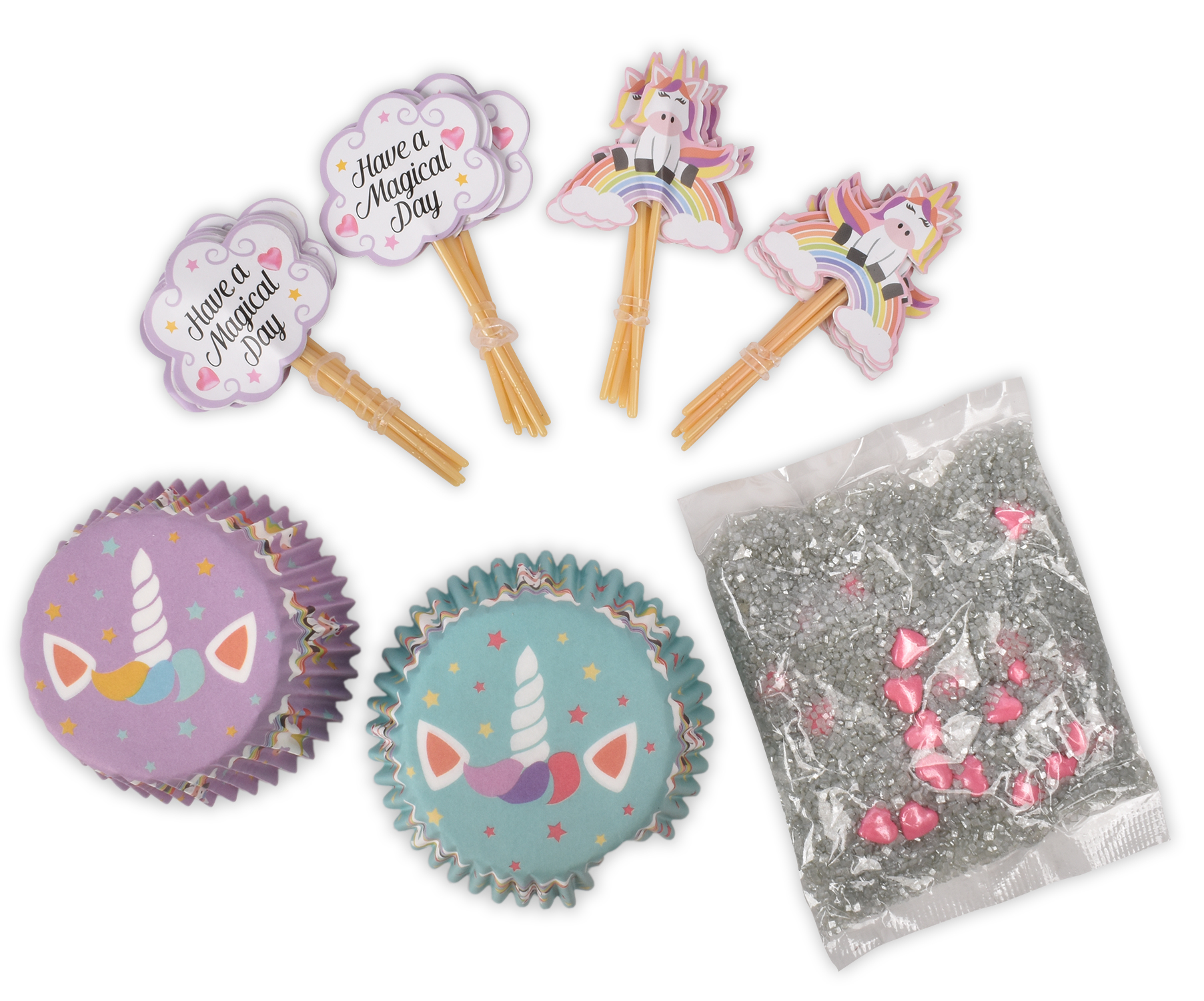 - Festival Unicorn Cupcake Décor Kit includes 24 picks, 24 liners and sprinkle blend