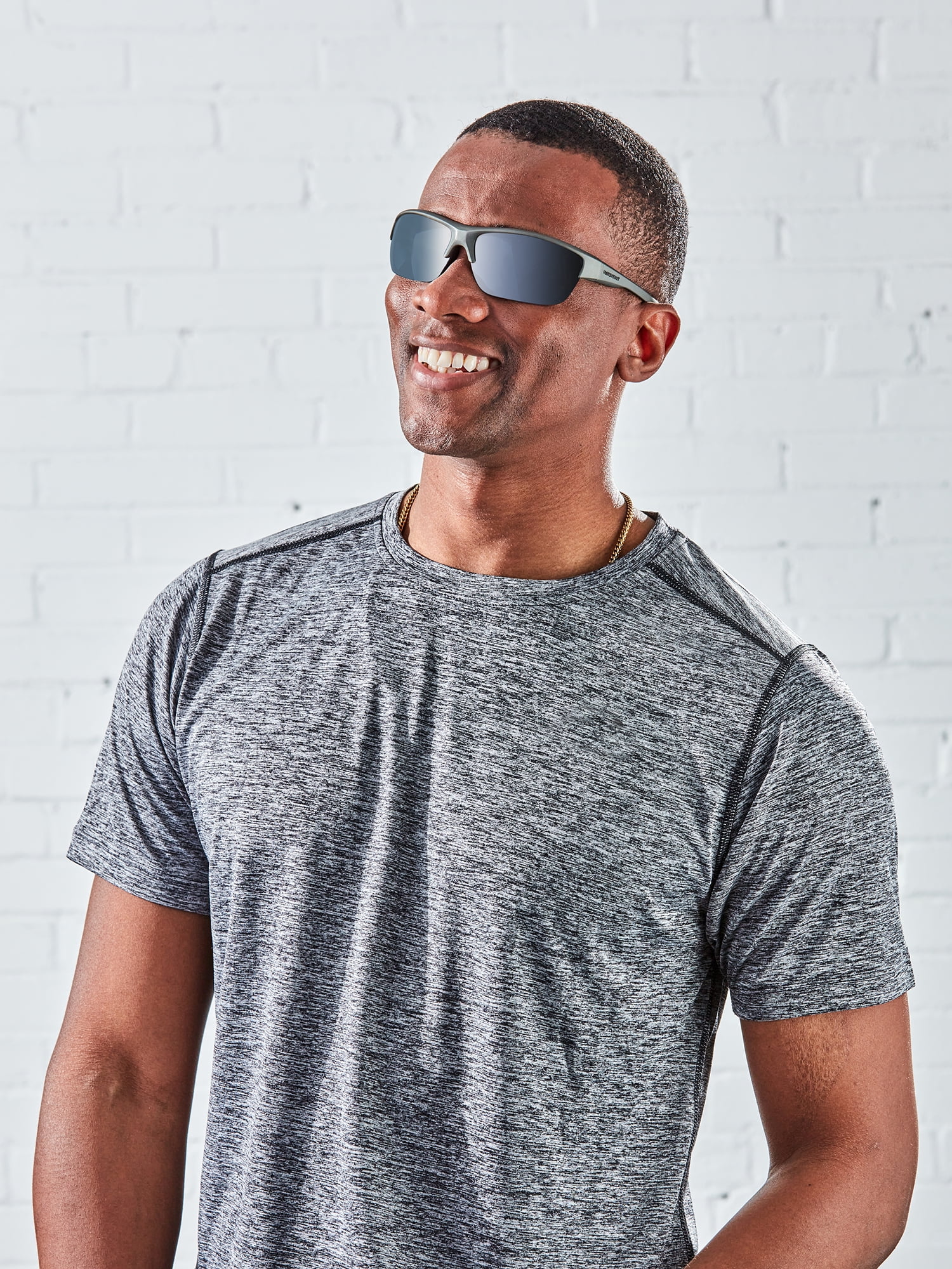These men’s semi-rimless, polarized sunglasses from the Foster Grant® TR90 Collection lose the weight but pack on the style. The graphite-colored, wraparound design has a more flexible frame for added durability and comfort. The smoke-tinted lenses are polarized to reduce glare from water, snow, roads or other reflective surfaces. The lenses also provide full-coverage, 100% UVA-UVB protection and are resistant to impacts and scratches.