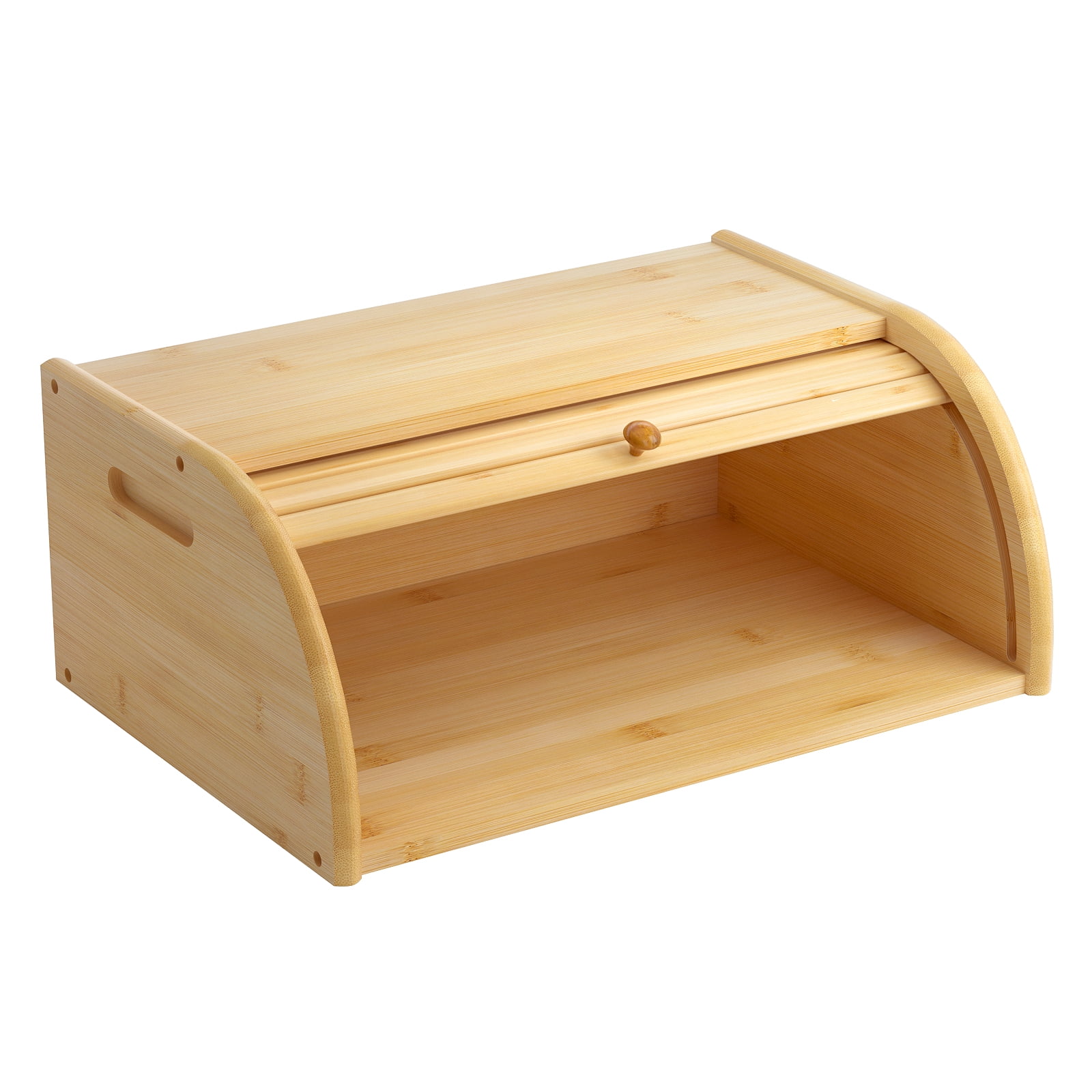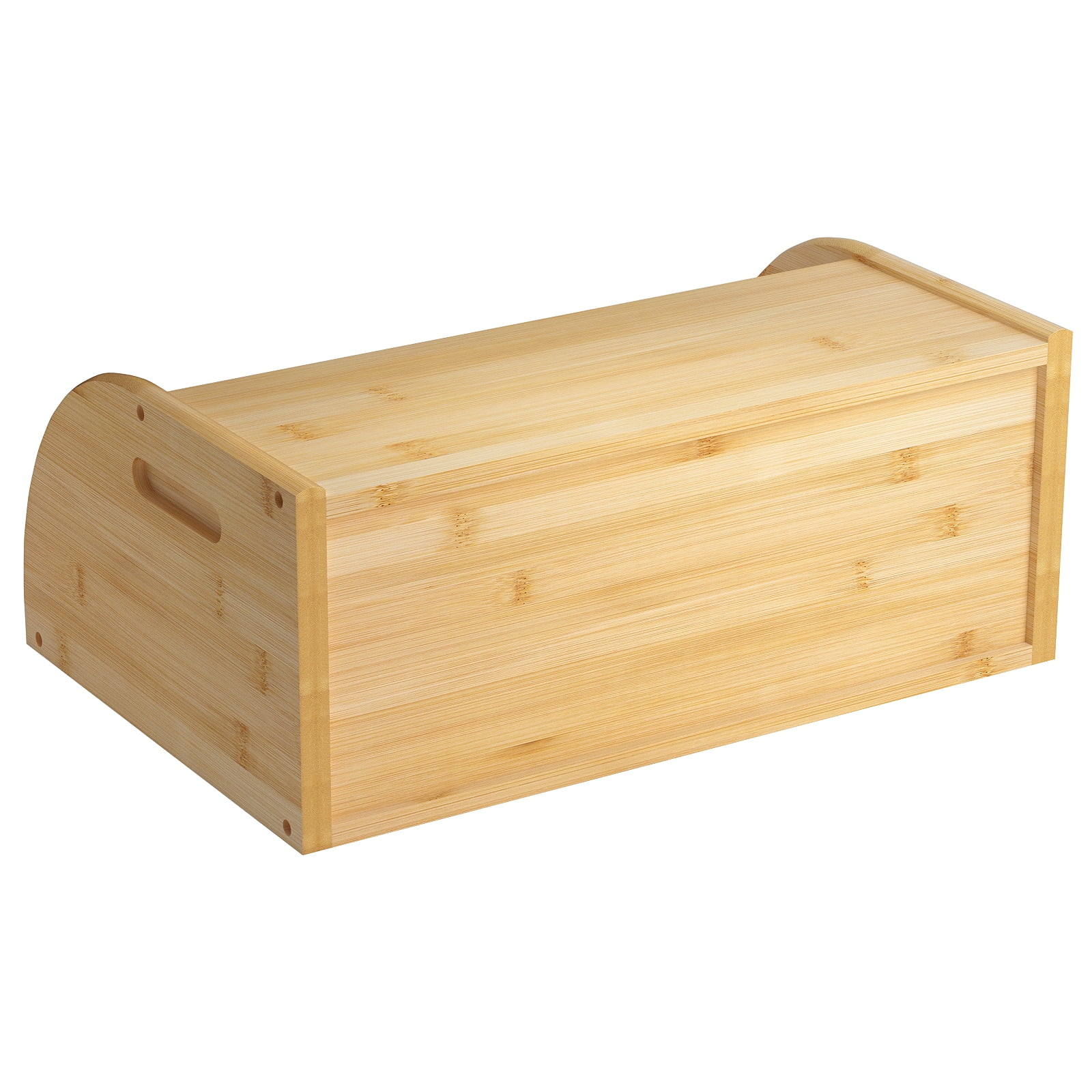 - NATURAL BAMBOO BREAD BOX: Crafted with natural bamboo, our bread box will add warm elegance to your kitchen décor while keeping your bread, cake, pastries and other baked goods fresh! Bamboo is sustainable, eco-friendly and very durable, making it an excellent choice for kitchen storage. The natural wood color will add classic style to your countertop!