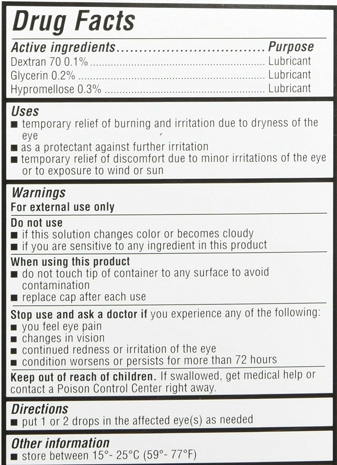 - Relieves discomfort: Provides relief from moderate irritation and discomfort caused by dry eye symptoms