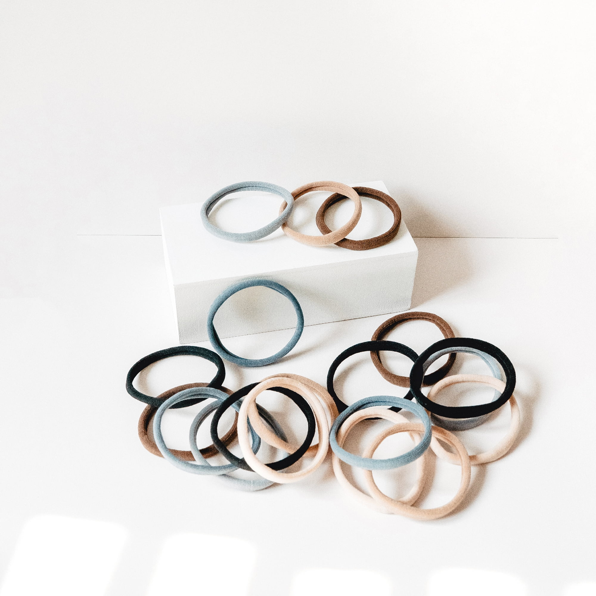 GIMME INFINITY SERIES HAIR BANDS ARE GAME CHANGERS! THE FINE BANDS VERSION IN THE INFINITY SERIES COLLECTION IS DESIGNED SPECIFICALLY FOR FINE, BRITTLE, OR HEAVILY BLEACHED HAIR. THE PATENT PENDING SEAMLESS HAIR BANDS PROVIDE A HEALTHY ALTERNATIVE TO REGULAR HAIR BANDS THAT DAMAGE WOMEN’S HAIR. GIMME INFINITY SERIES HAIR BANDS PROVIDE A FIRM, YET COMFORTABLE, HOLD ALL DAY LONG. THEY ARE EXTREMELY COMFORTABLE ON THE WRIST AS WELL. WOMEN LOVE THESE BANDS BECAUSE THEY DON’T CAUSE BREAKAGE, CREASES, OR SNAGS, AND THEY DON’T HAVE A HARD-GLUE SEAM LIKE REGULAR ELASTICS. THESE UNIQUE HAIR BANDS ALSO MAKE IT SO YOU DON’T HAVE TO GO TO YOUR HAIR STYLIST TO BLEND OUT THE BREAKAGE LINE FROM THE HARSH DAMAGE CAUSED BY REGULAR ELASTICS. THERE ARE NO OTHER HAIR BANDS THAT PROVIDE THE LONG LIST OF BENEFITS AND 100% SATISFACTION THAT THE GIMME INFINITY SERIES HAIR BANDS DO!