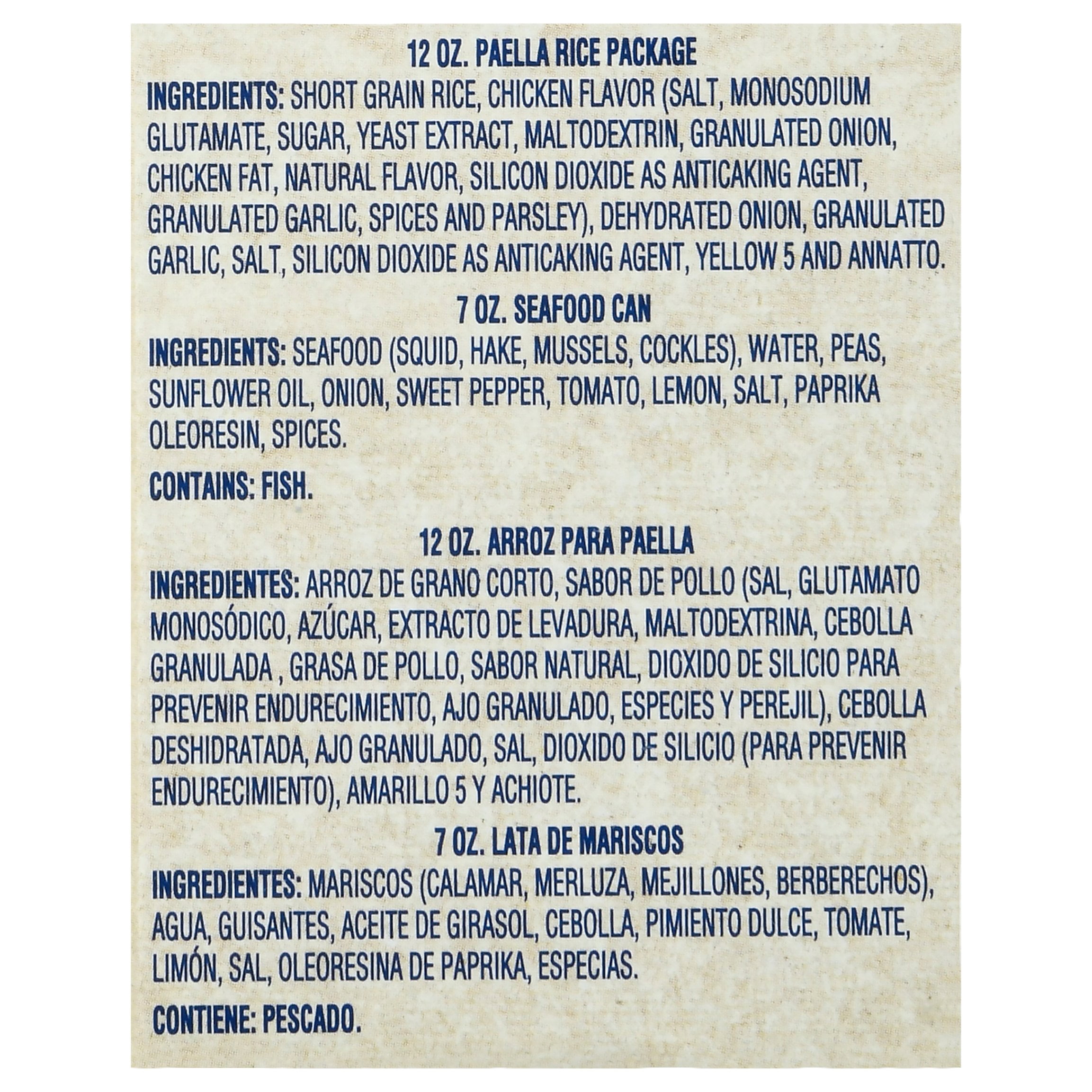 GOYA Paella 19 Oz. GOYA® Paella—it’s all in the box! This Paella is a traditional Spanish dish made with premium seafood and Valencia-type rice. This short grain absorbs liquid and flavor quickly and stays relatively firm during cooking, perfect to prepare this classic dish. Ready in three easy steps!