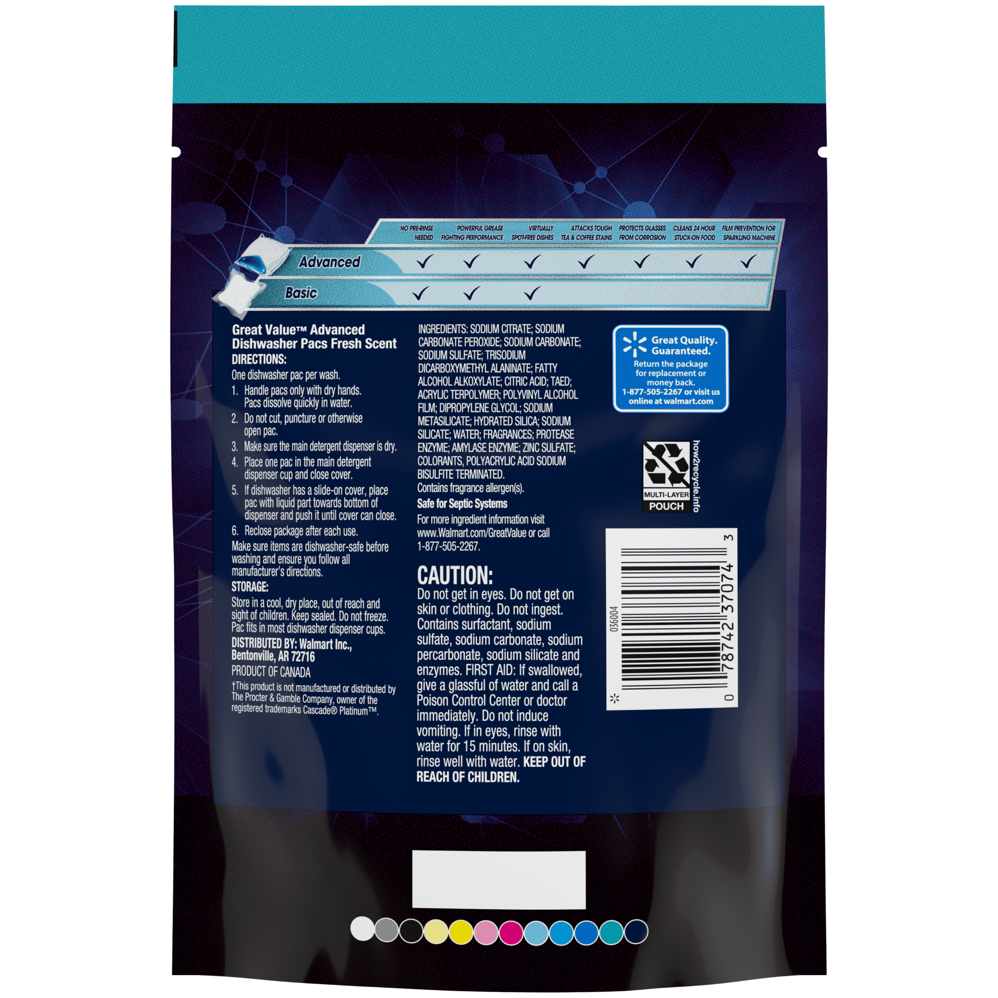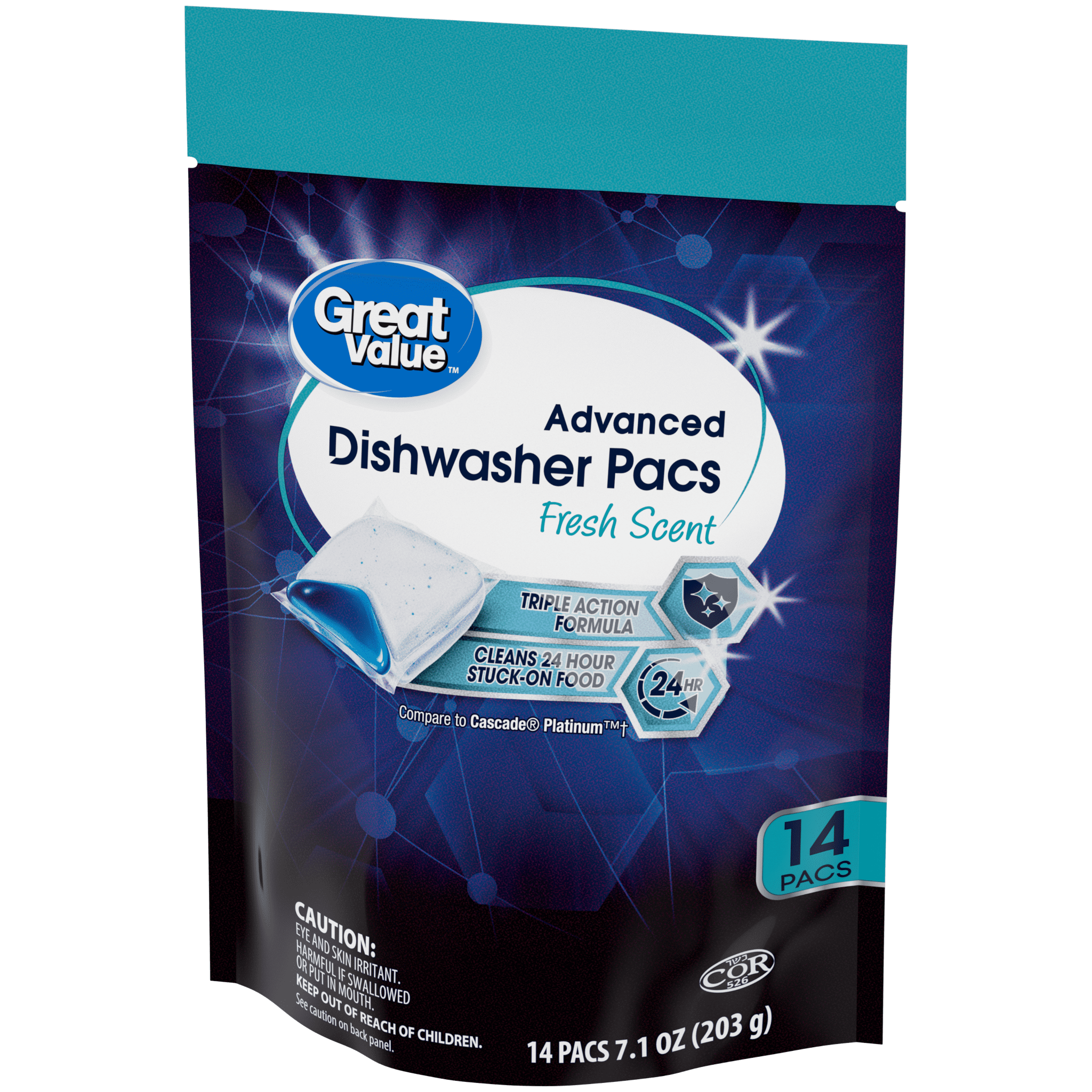Great Value Advanced Automatic Dishwasher Pacs, Fresh Scent, 14 Count