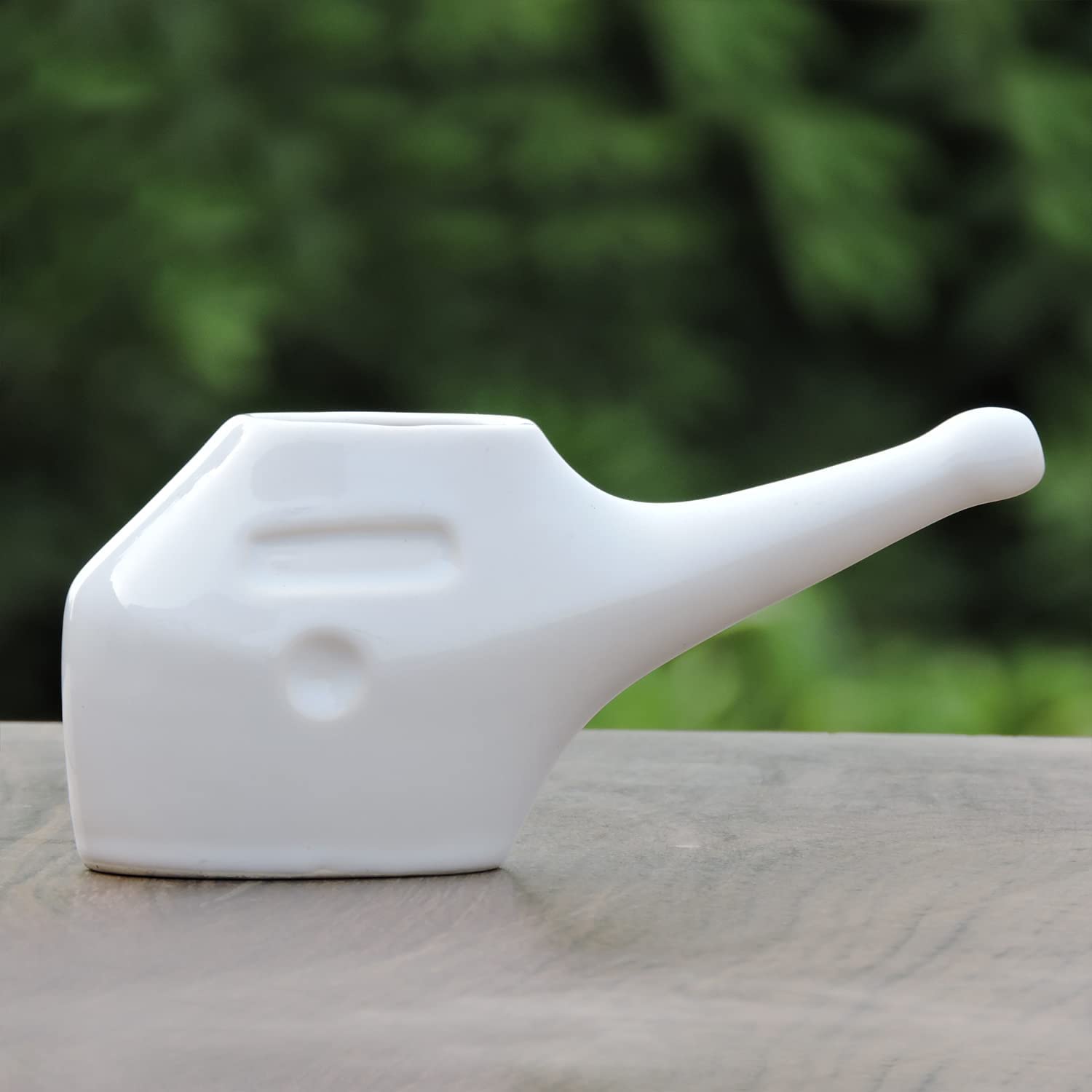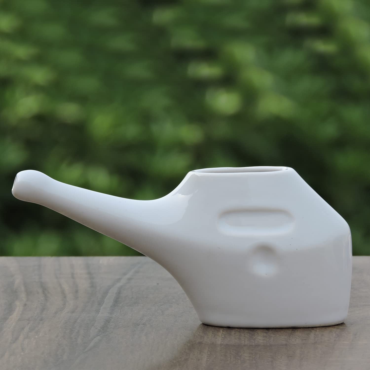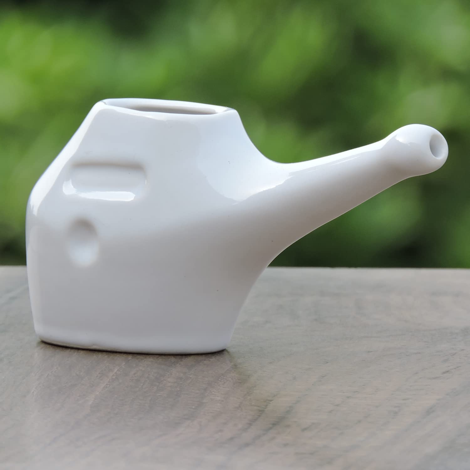 Neti kriya or jala neti is an ancient Ayurveda technique used to cleanse the nasal tract of any impurities. For ages, yogis have practiced this technique for the innumerable, potent benefits. In the present day too, people all over the world use this excellent technique to achieve dramatic health results especially with those suffering from nasal tract health issues such as sinus. Regular practice of neti kriya is proven to reduce the effect of sinus and allergies without any side effects. Our Ceramic neti pot for nasal cleansing is a compact and travel-friendly option for people on the go.