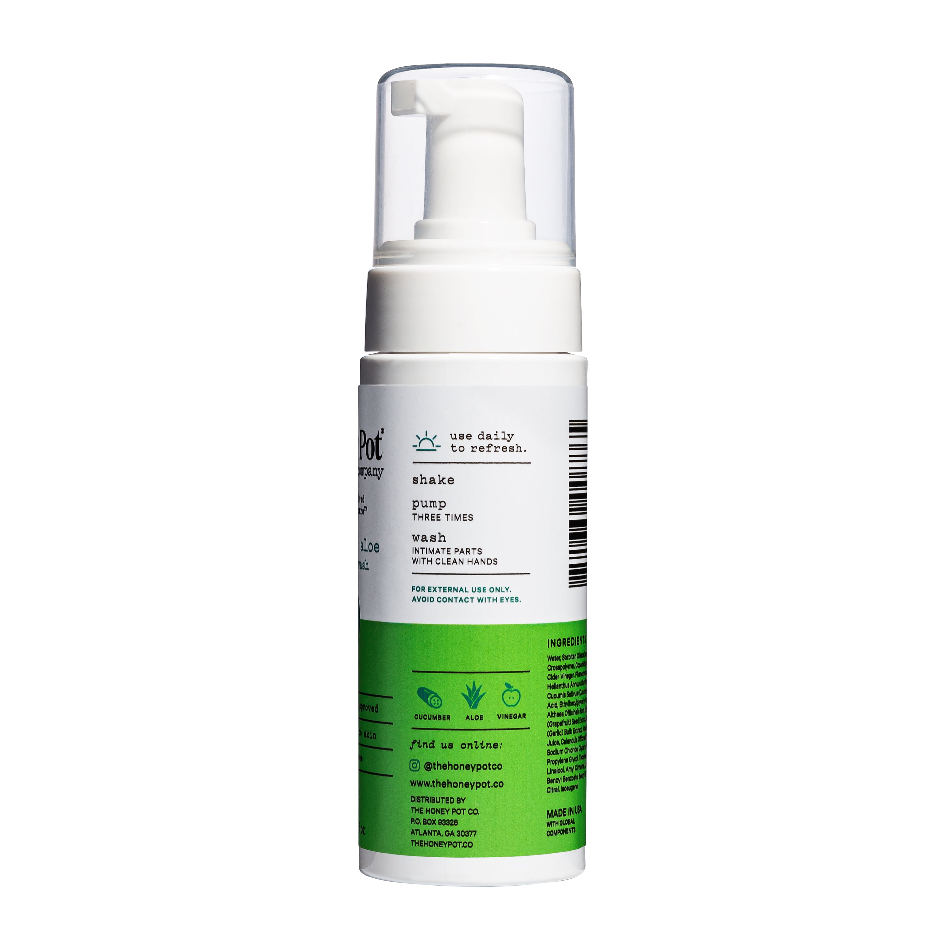 Aloe Leaf Juice, Castile Soap, Honeysuckle Flower Extract, Water, Olive Oil, Apple Cider Vinegar, Jojoba Seed Oil, Chamomile Flower Extract, Menthol, Lavender Essential Oil, Ylang-Ylang Essential Oil, Lemon Peel Oil, Xanthan Gum, Citric Acid.