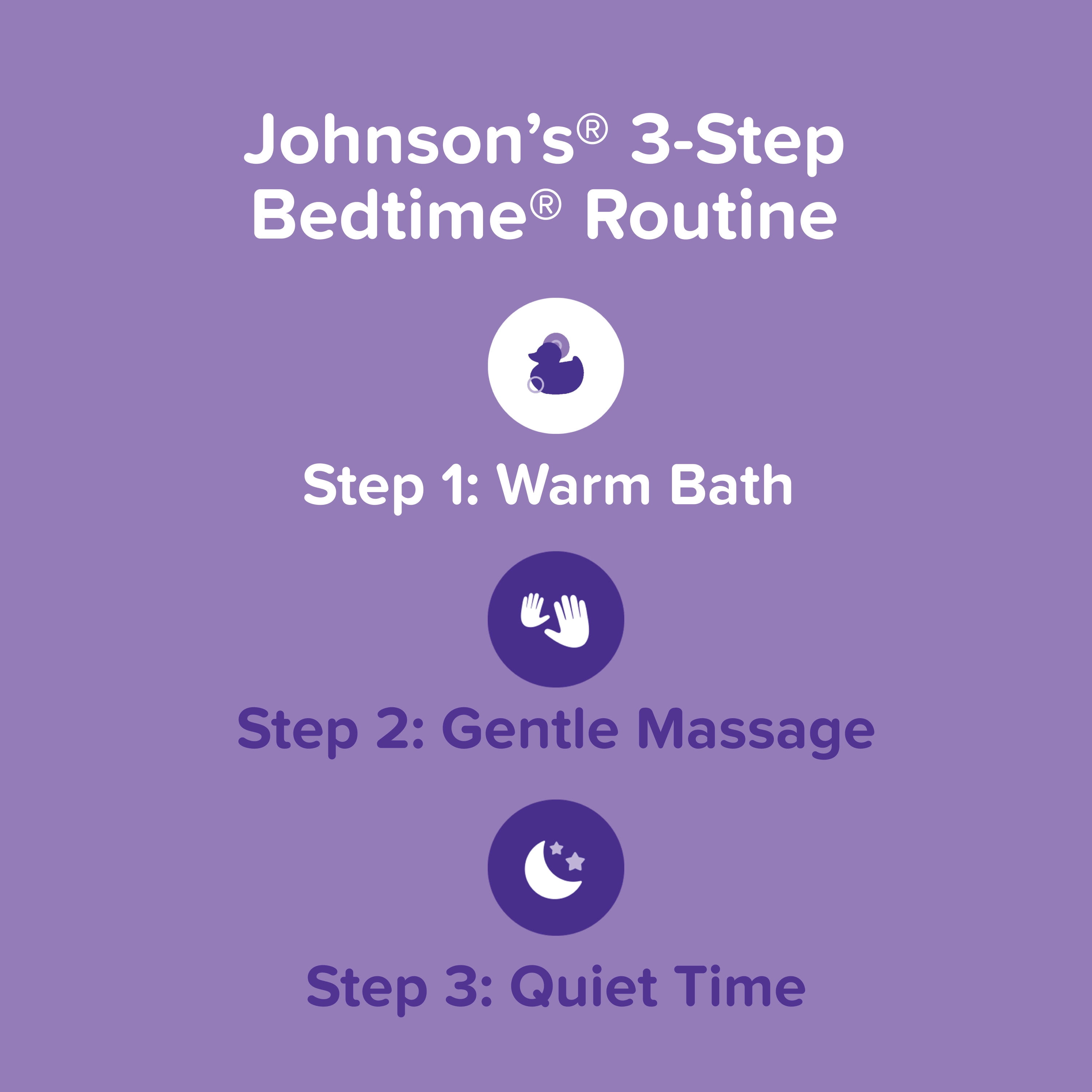 - Johnson’s proven 3-step bedtime routine helps baby fall asleep faster and stay asleep longer