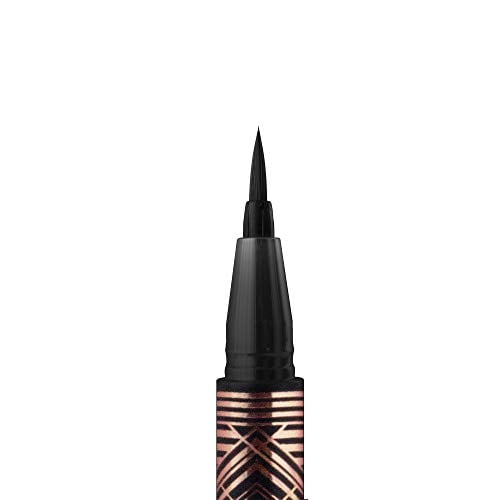 A waterproof liquid eyeliner. Complete with 1920s-inspired packaging, Golden Gatsby Glam Slim Eyeliner Pen offers an array of defined, glamorous looks. This ultra-pigmented and intense black formula glides effortlessly over the skin with a precision brush tip, creating thin or bold lines for any occasion. Cruelty-free.A liner that stays on all day and night.