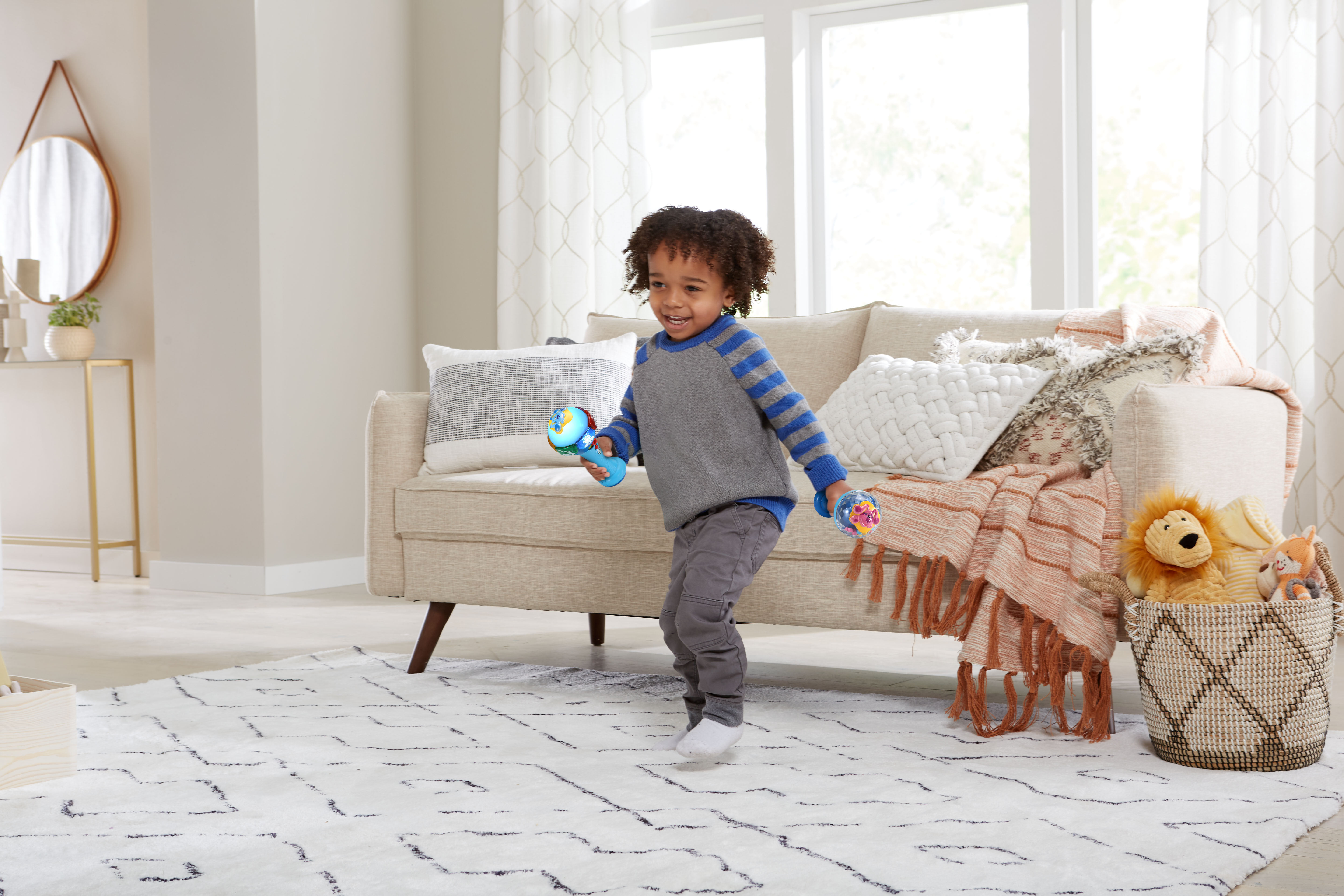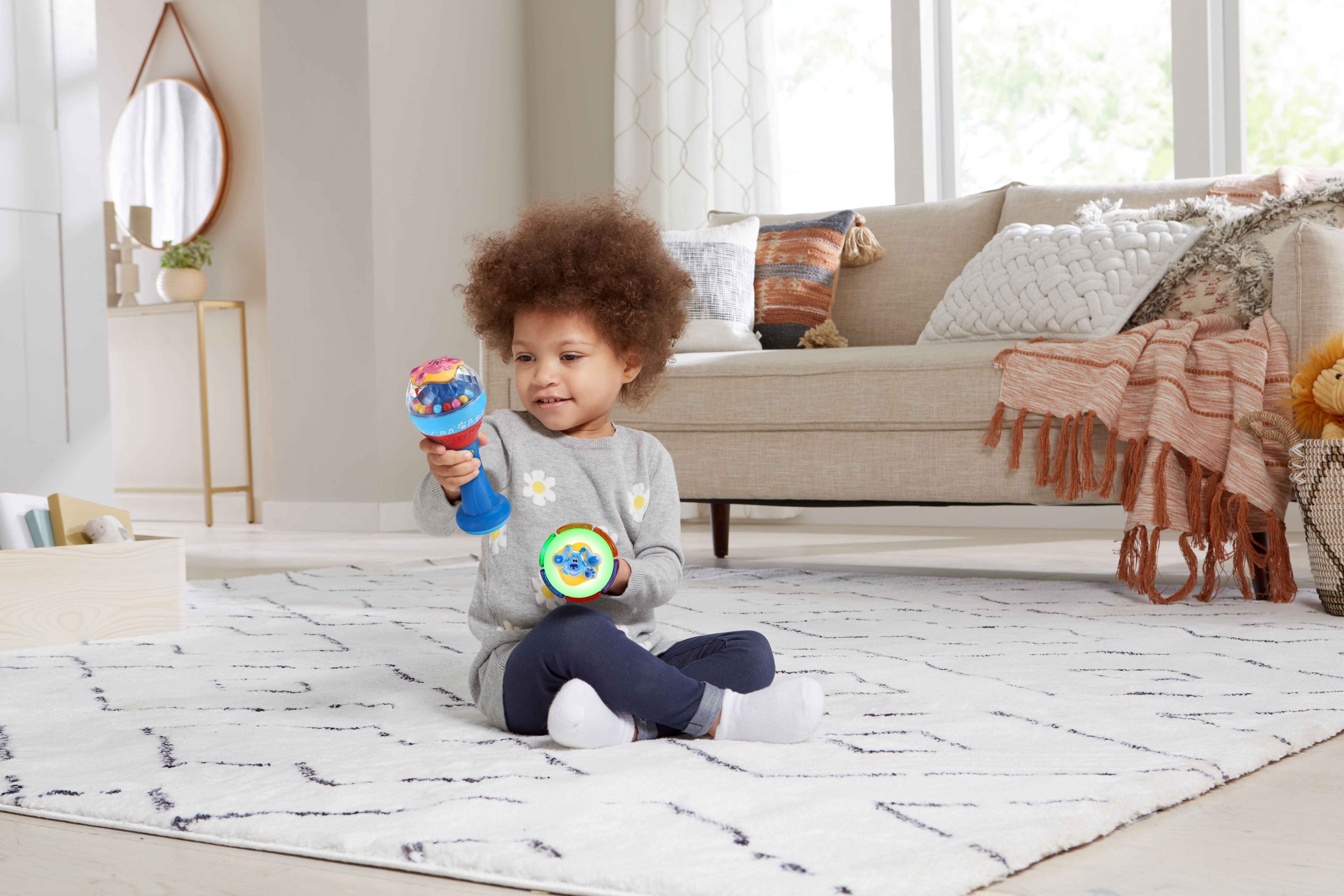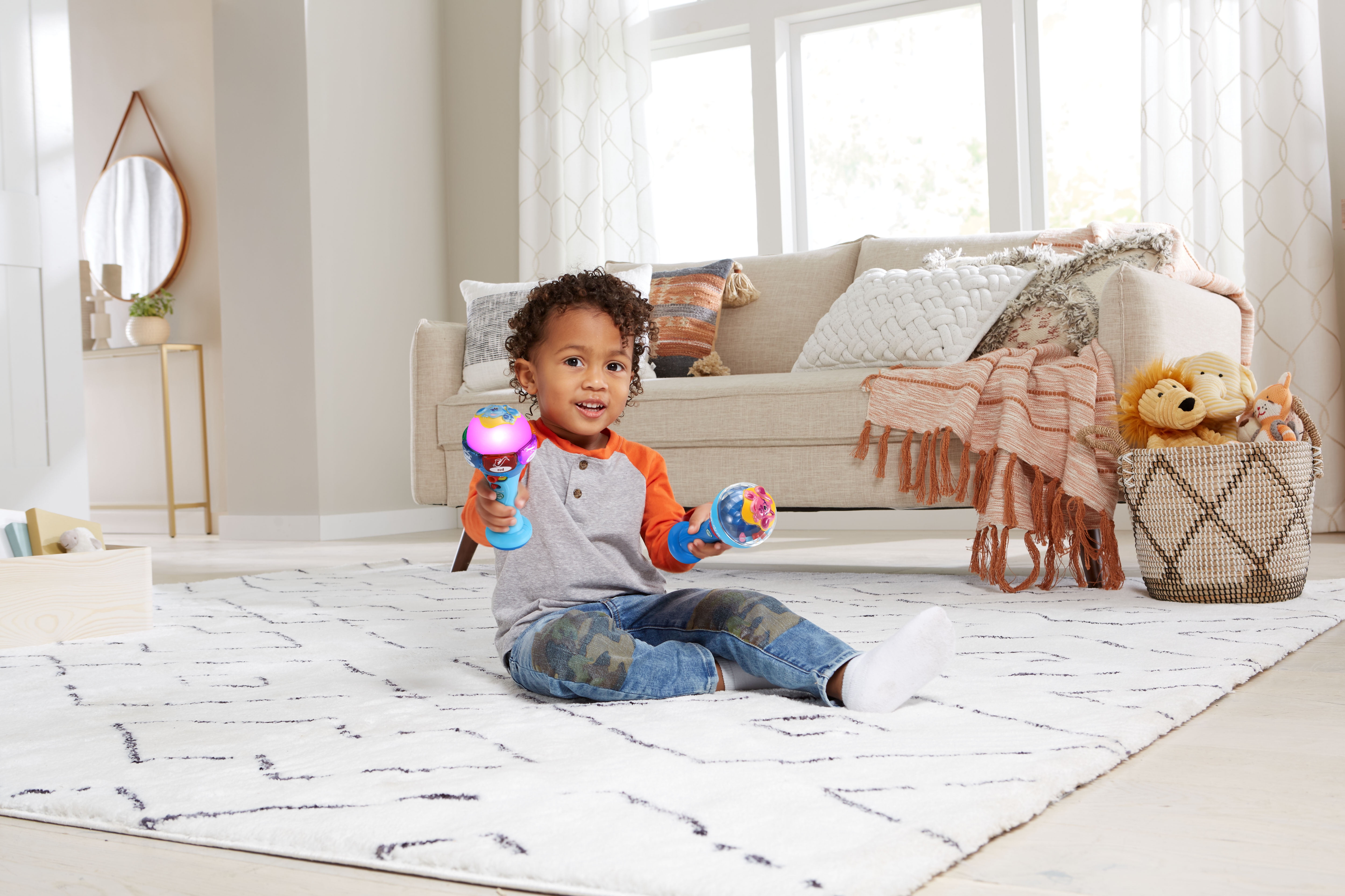 - Colorful light-up buttons introduce colors, counting, and the names and sounds of six instruments
