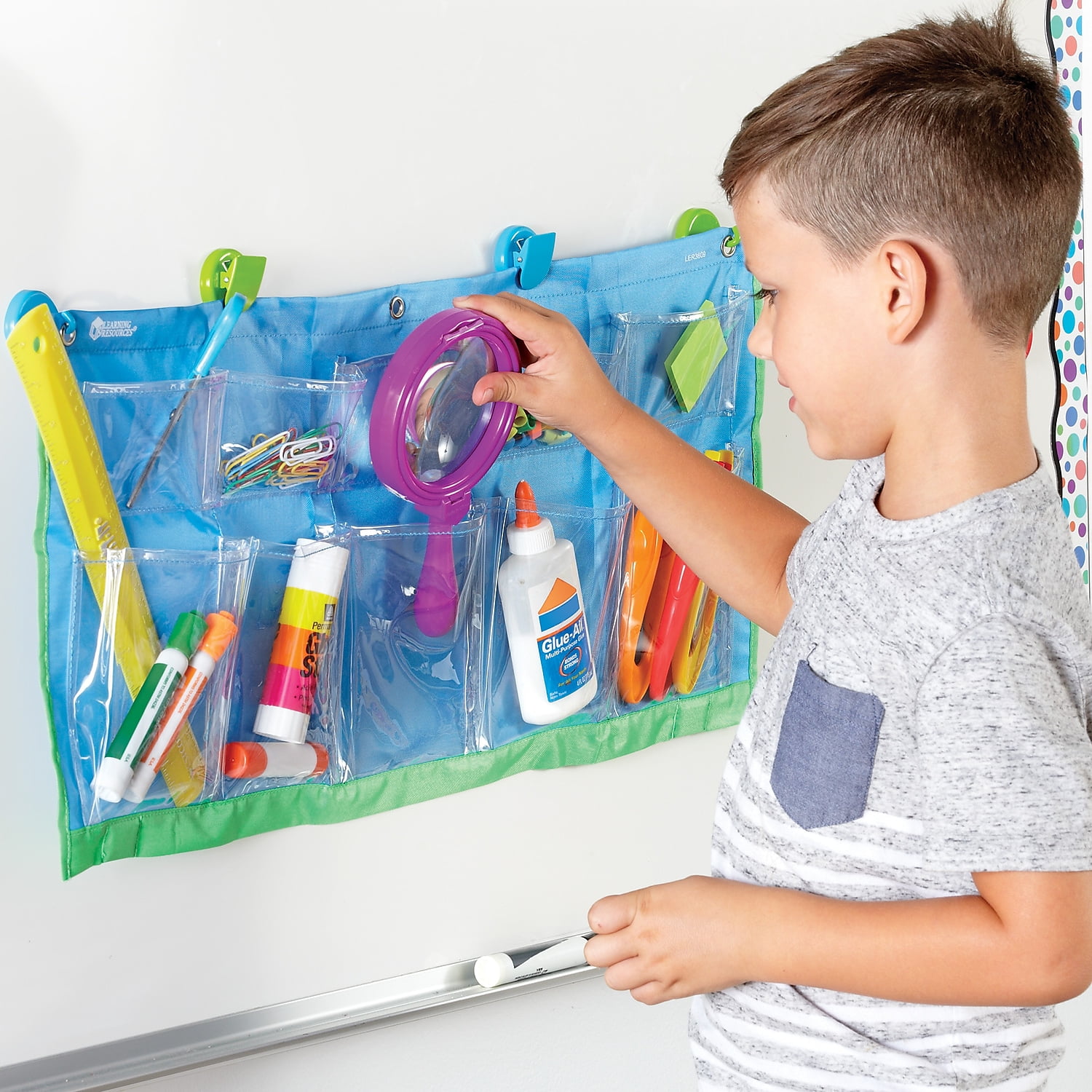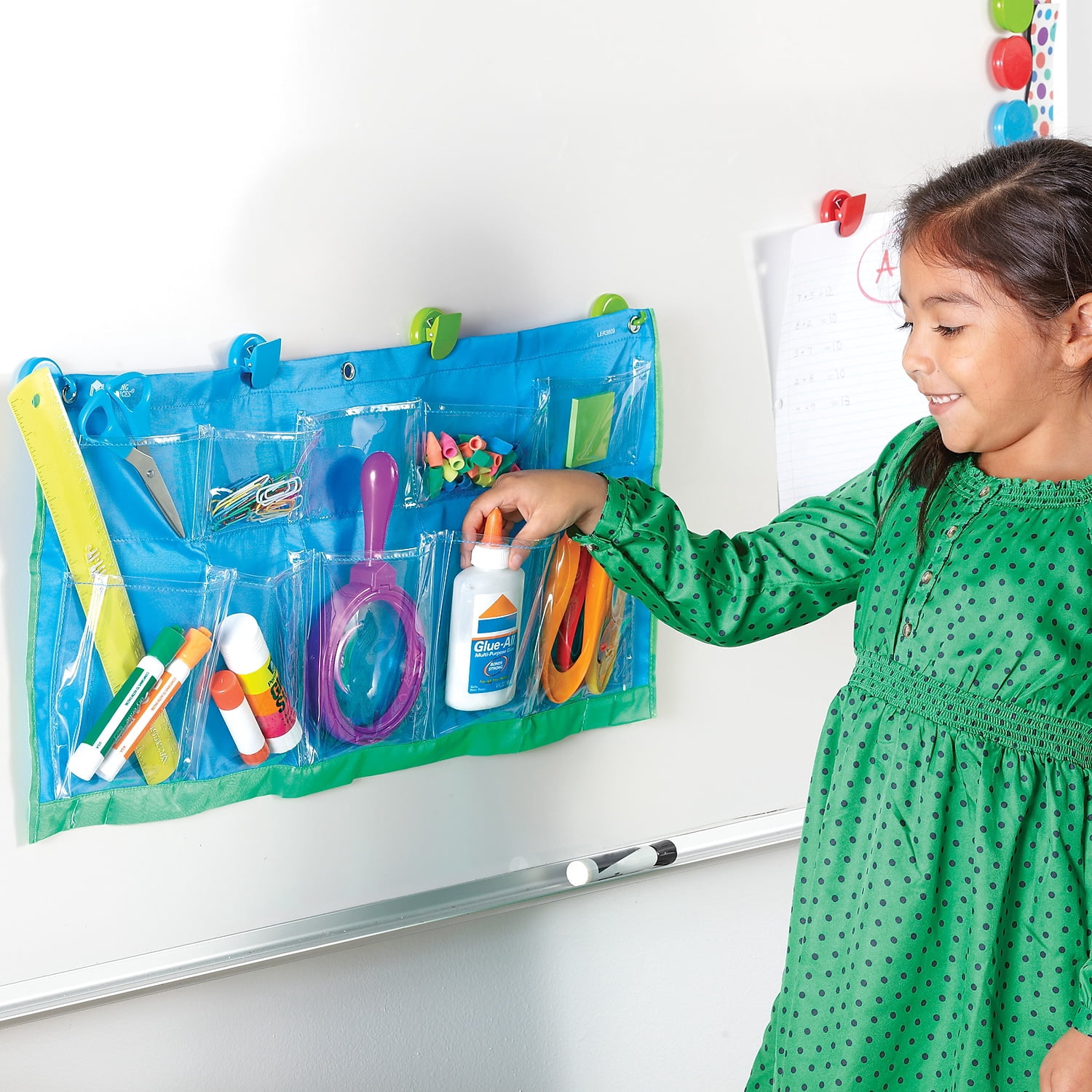 Whether you’re working in a classroom or trying to keep homes clutter-free, storage space always comes at a premium. With the Create-A-Space Hanging Storage Chart from Learning Resources, you can create your own instant storage unit wherever you find a flat surface. Each durable plastic chart measures 24.5”W x 12”H, making it an easy fit on walls or doors. Once hung, each storage chart offers up 10 pockets (5 large and 5 small) sized to fit everything from office supplies to arts and crafts materials. Each pocket comes with a clear front, so you always know what’s stored inside each one. The Create-A-Space Hanging Storage Chart is as tough as it is convenient; made from thick plastic, each chart can hold its share of glue sticks, markers, or stapler refills without stretching or tearing. Add it to your own organizational scheme, or use it to establish a new neatness regimen.