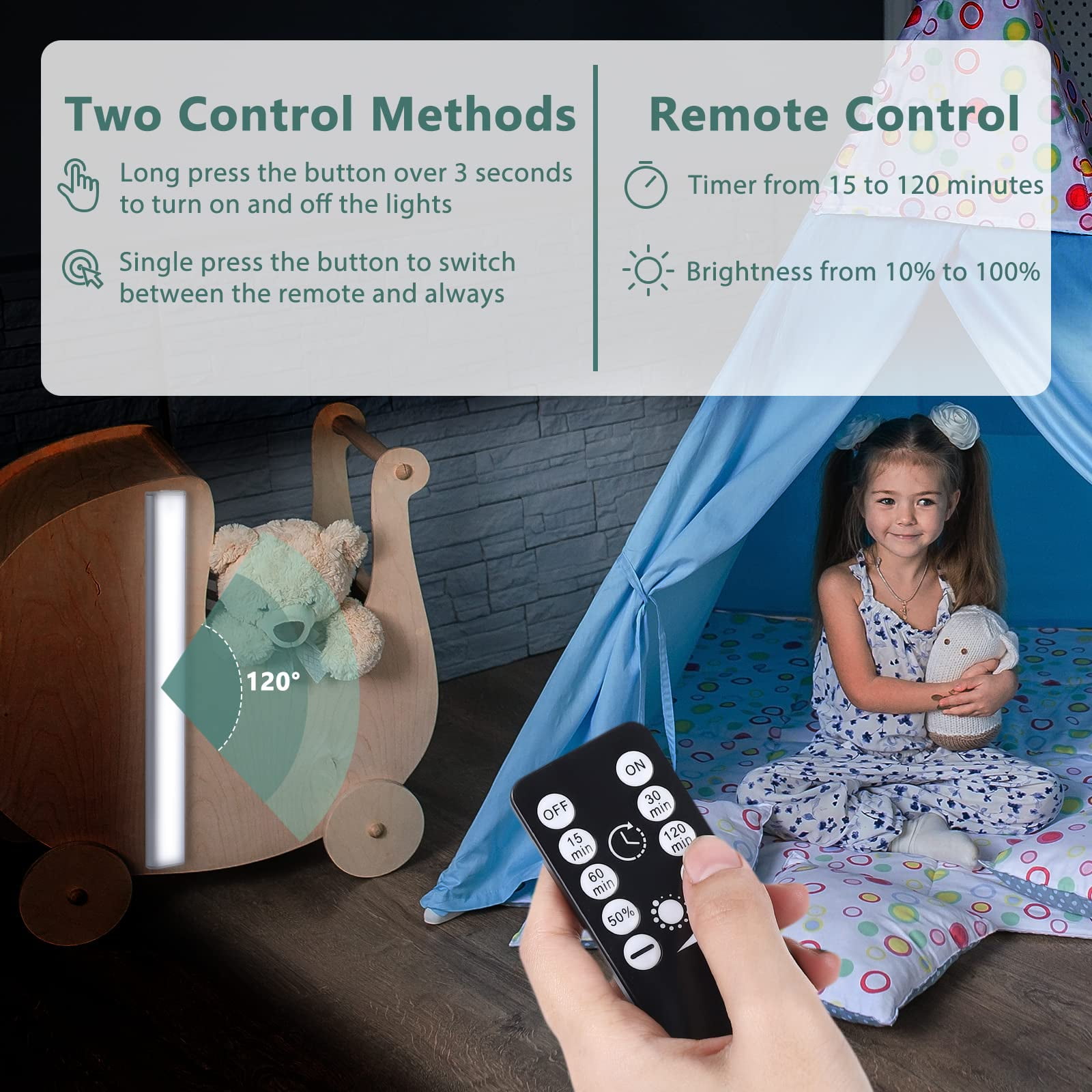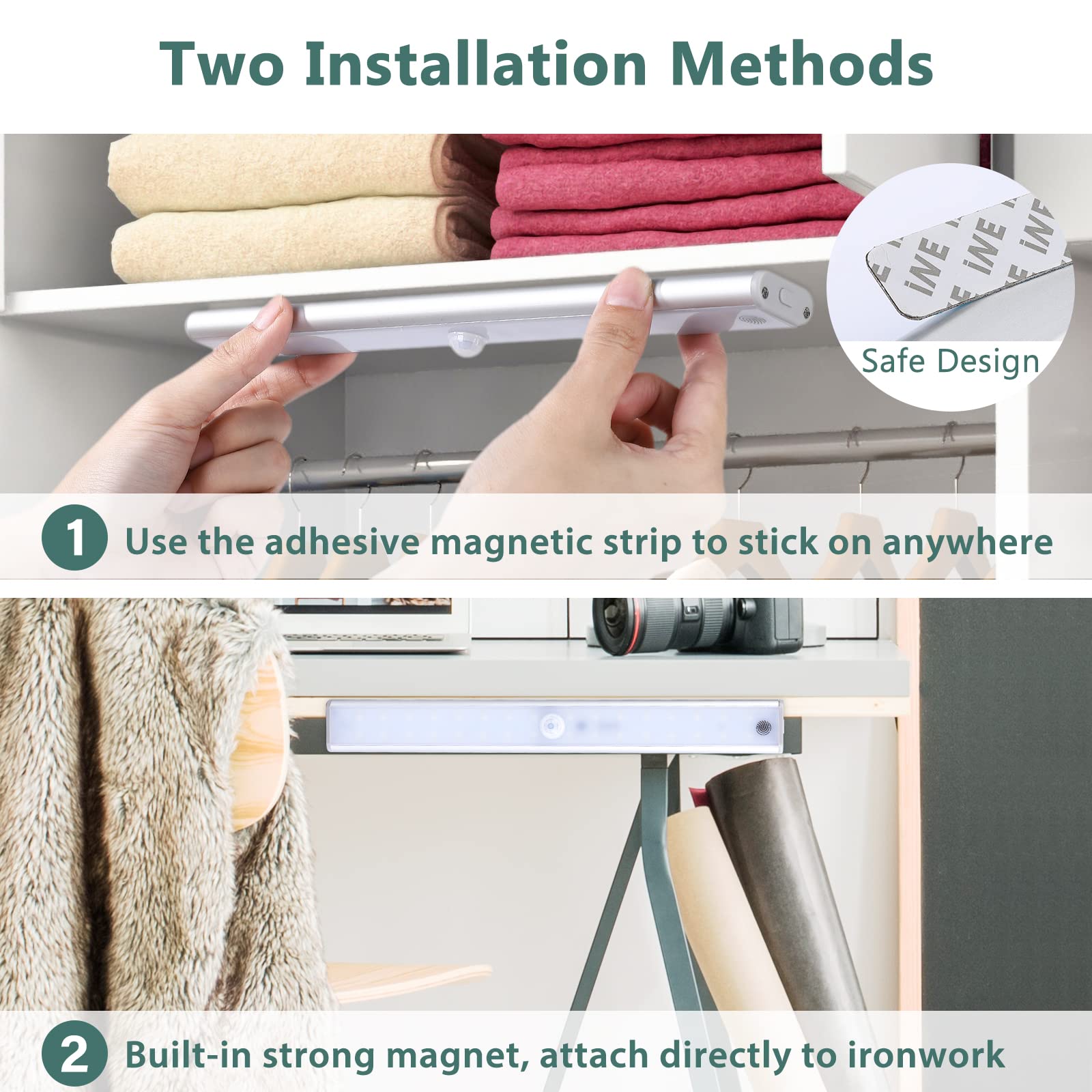 Simple and flexible installation – our LED battery powered lights can be installed quickly using the supplied 3M single-sided sticky magnetic strip. In addition, the lights come with four screws that allow you to place them flexibly with magnetic strips or attach them securely with screws Remote Control and Adjustable Brightness;
