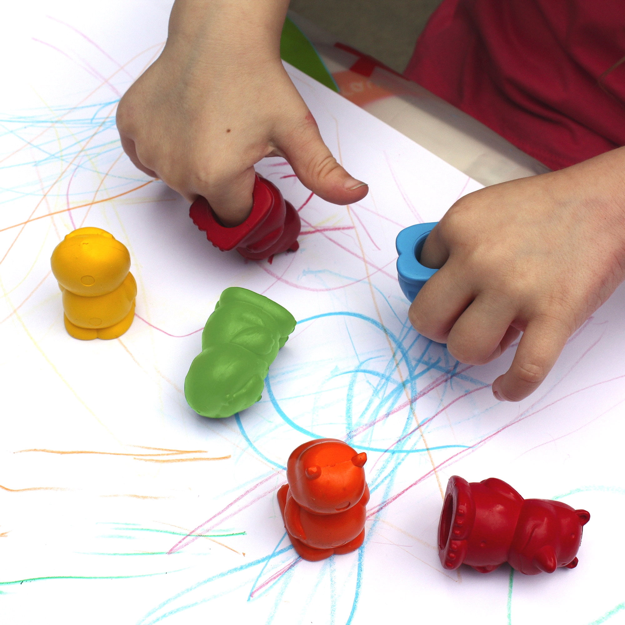This set includes six animal shaped crayons in vibrant colors that encourage children to mix creativity with play. The crayons double as finger puppets; try drawing with them while they’re on your fingers! They offer smooth color lay-down, gliding easily over paper.