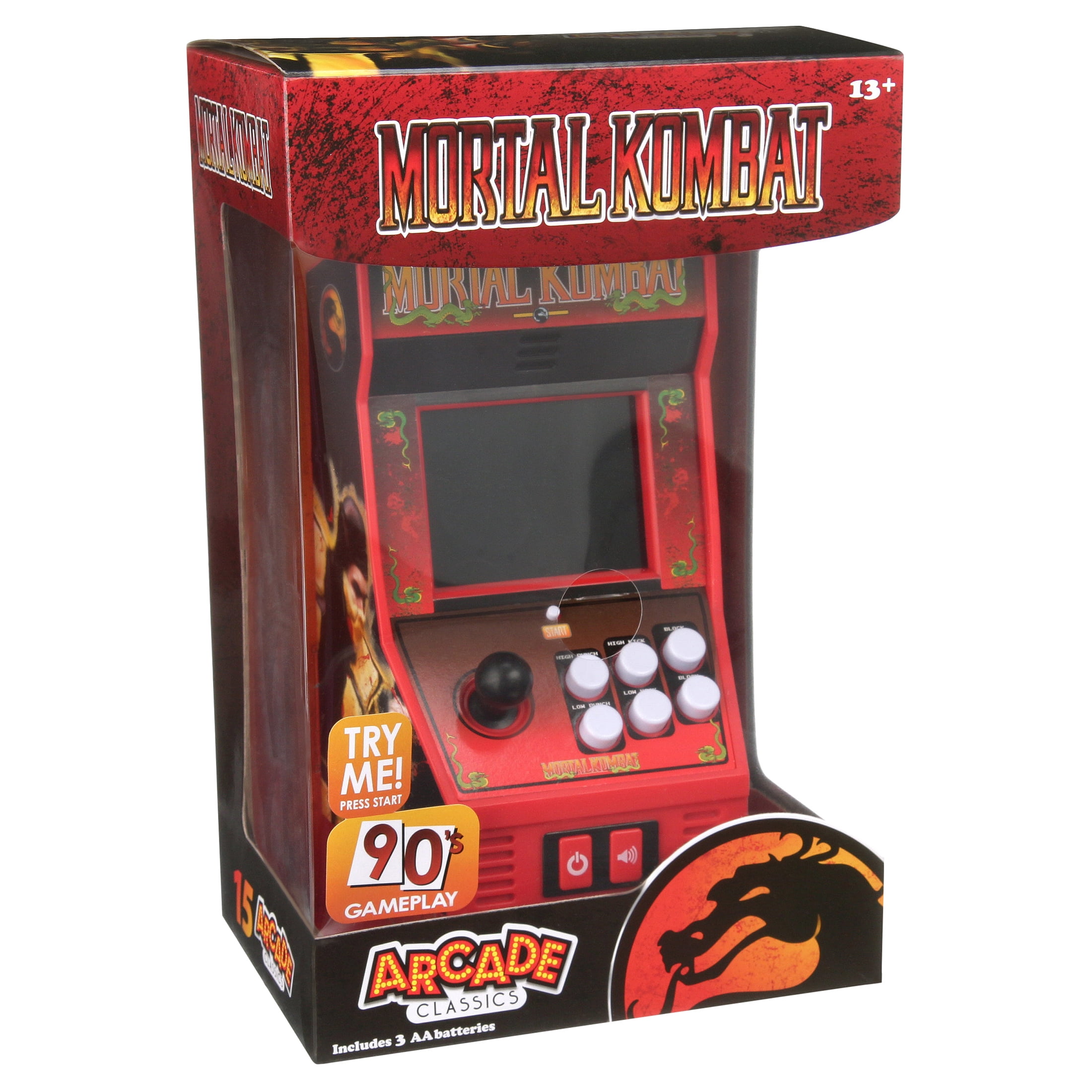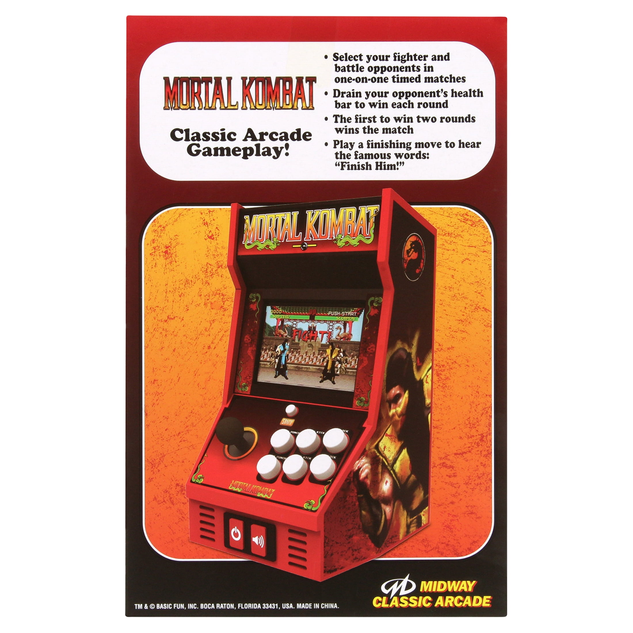 One of the most popular arcade games of all time, Mortal Kombat is back in this authentic handheld edition! Select your fighter and battle opponents in one-on-one timed matches. Drain your opponent’s health bar to win each round. The first to win two rounds wins the match! Play a finishing move to hear the famous words: “Finish Him!” For ages 13 and up. Includes 3 AA batteries.