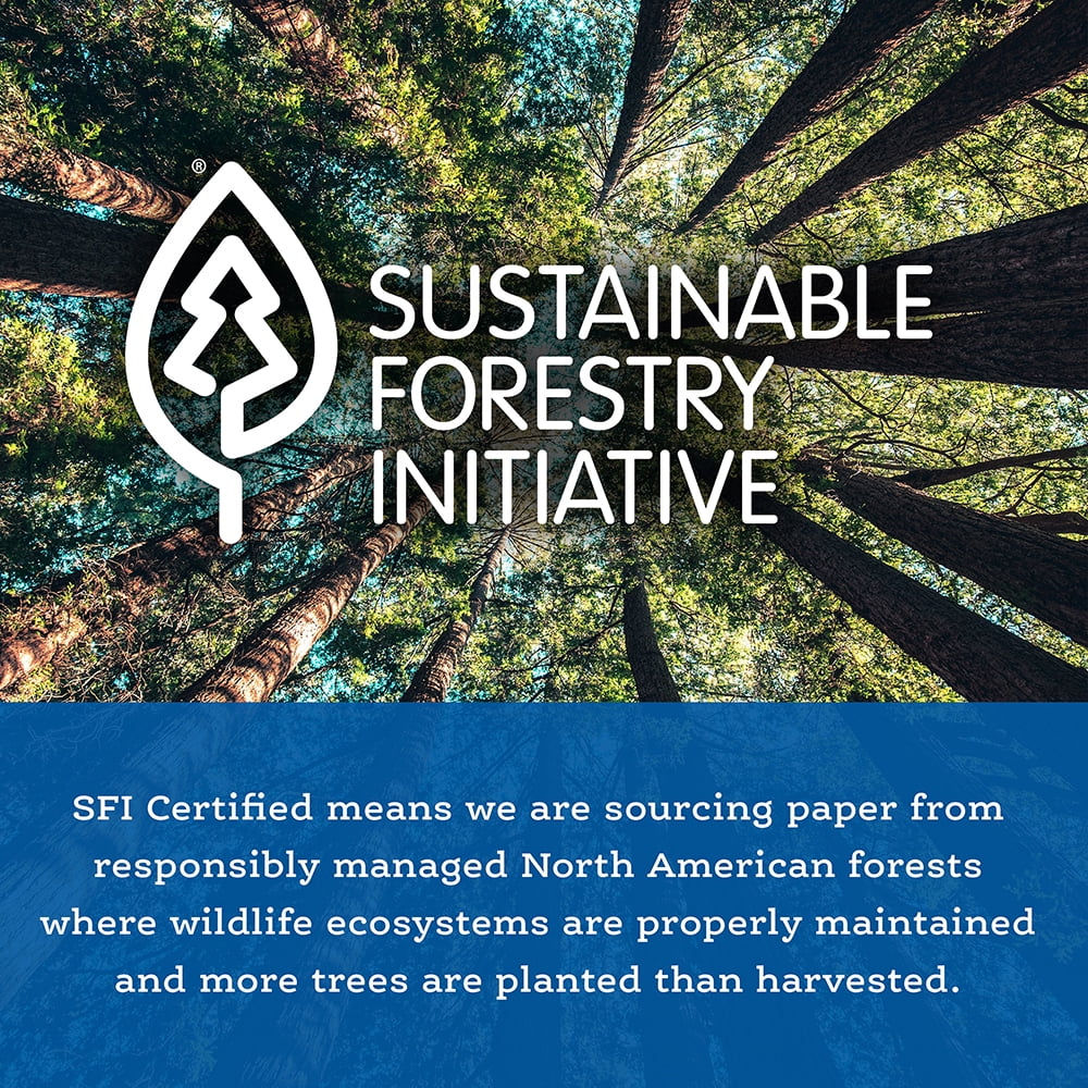 - Paper is certified by the Sustainable Forestry Initiative (SFI)