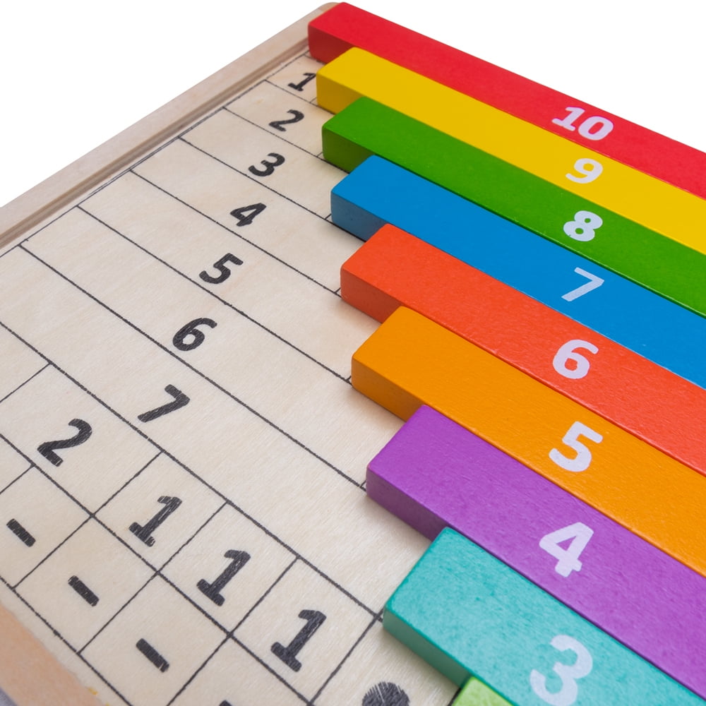 I’m Professor Poplar, and this is my Astounding Arithmajig! This multimodal, Montessori, masterpiece of a toy is a totally tactile way to learn ealy arithmetic. Pick up the unit blocks and feel their different lengths as you count, add, and subtract. You can even arrange them into equations, shapes, and patterns to help develop fine motor skills! Try to find all the different combinations of numbers and operations you can use to get to ten! Or if you want to work on your subtraction or addition, simply put two numbers in one slot with the operative symbol and the equal sign below with the answer. If your blocks on top and bottom are of equal size, you are correct. This toy makes learning fun when you can see just how many different ways to get to the answer! And parents will love seeing the kids have fun with one of my best inventions yet as their kids have fun learning and playing.