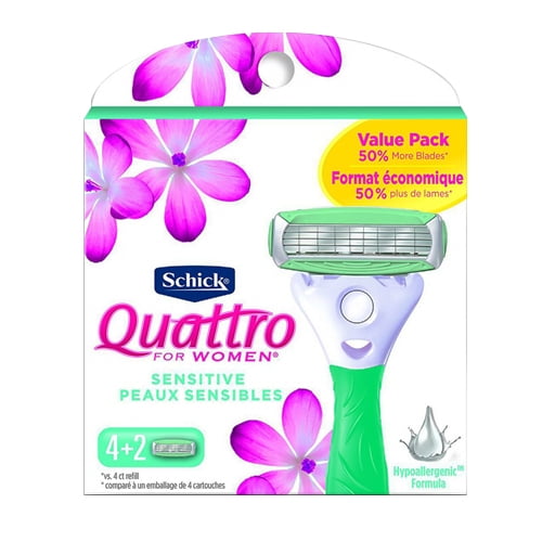 Schick Quattro Sensitive Razor Blade Refills for Women, 6 Ea