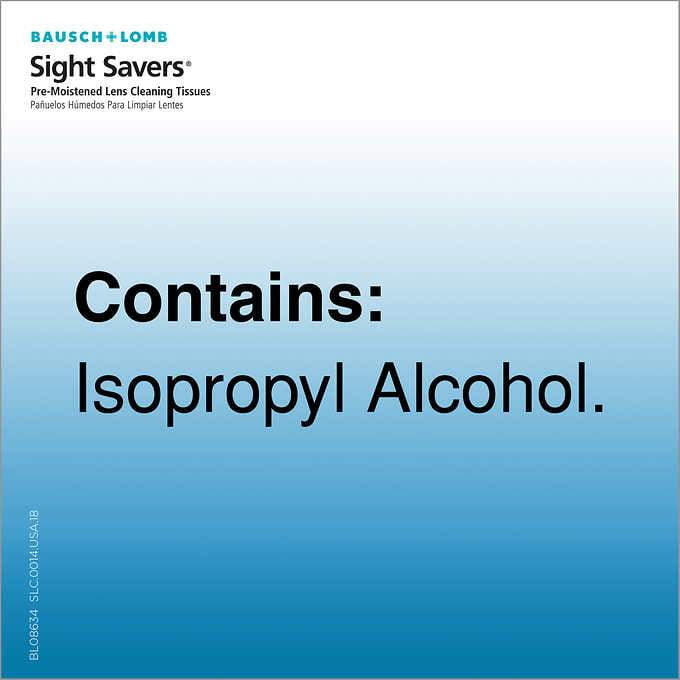 Sight Savers Lens Cleaning Tissues, 200 Tissues Sight Savers® Pre-Moistened Lens Cleaning Tissues, 200 Tissues by Bausch + Lomb are great for multi-purpose use, including cleaning both glass and plastic lenses. These large, 5" x 6" cloths are anti-fog, anti-static, and anti-streaking. If grit is on the lens, damage may occur to any applied coatings or the lens itself. Remove any dirt or grit from the lens.