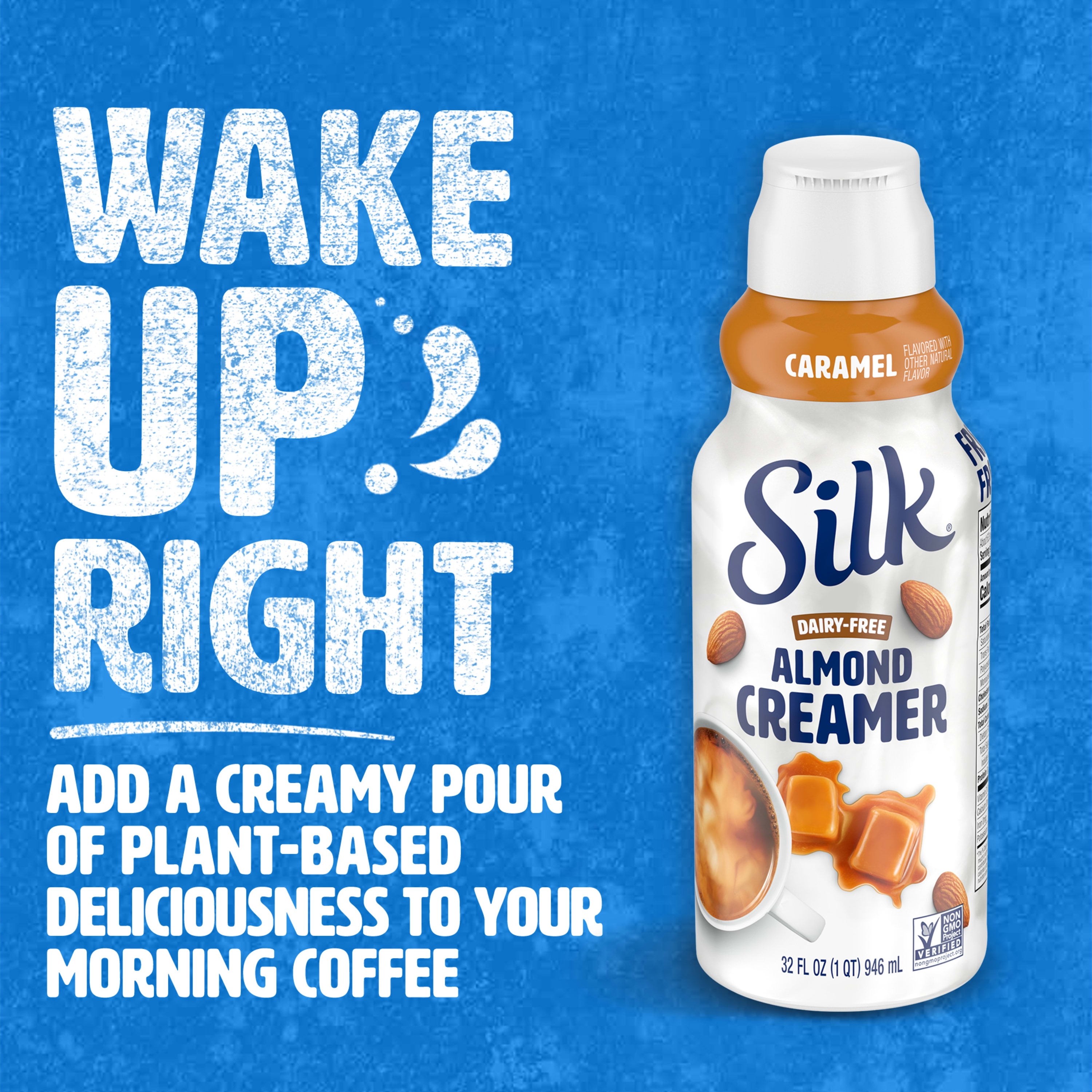 Take your morning joe up a notch. Silk Caramel Almond Creamer takes coffee and tea to new, deliciously creamy heights. Filled with sweet taste, this creamer adds a splash of smooth, rich flavor to your favorite morning drink. You can enjoy the caramel almond creamer each morning, knowing it is gluten-free, Non-GMO Project Verified, and free of artificial colors or flavors.Here at Silk, we believe in making delicious plant-based food that does right by you and fuels our passion for the planet. Every delicious product we offer is made with plants, they’re naturally dairy-free, gluten-free, and cholesterol-free. And our entire lineup is enrolled in the Non-GMO Project Verification Program. Choose from an array of non-dairy products–from silky-smooth nutmilk to creamy, dreamy yogurt alternatives–and taste the goodness for yourself!