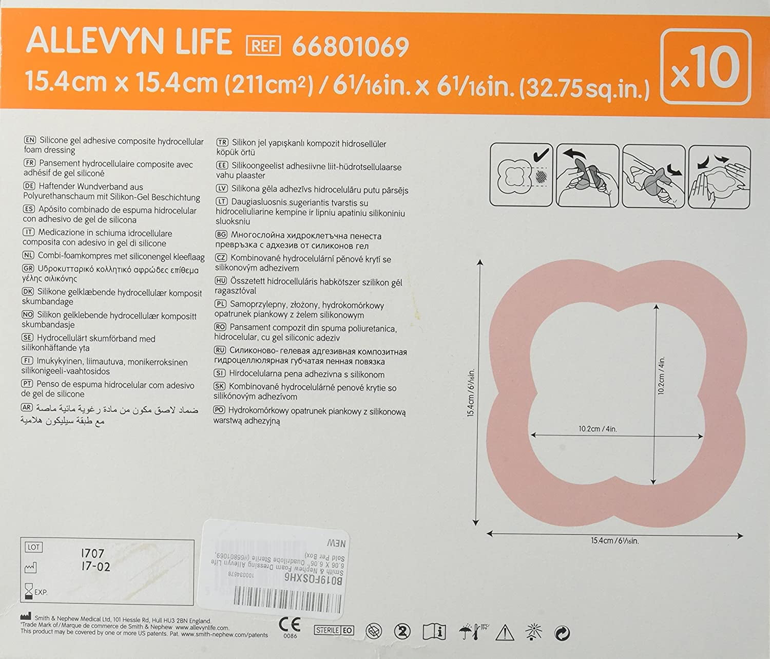Smith & Nephew 66801069 Allevyn Life Dressing 6 1/16 in. X 6 1/16 in. (Pack of 3)