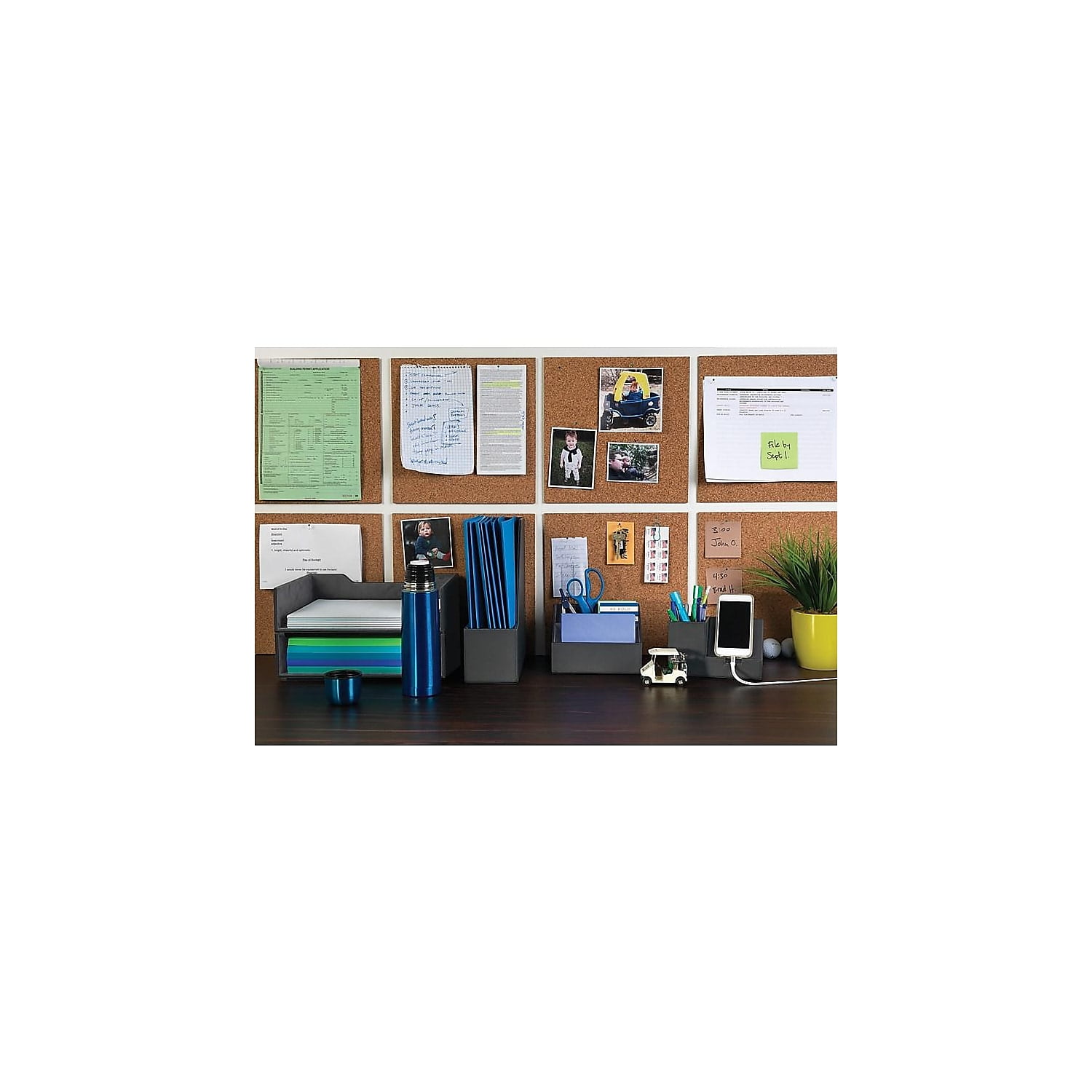 - Save space around your desk with Side-loading letter trays. If you’ve got a lot of papers, stack these letter trays high.