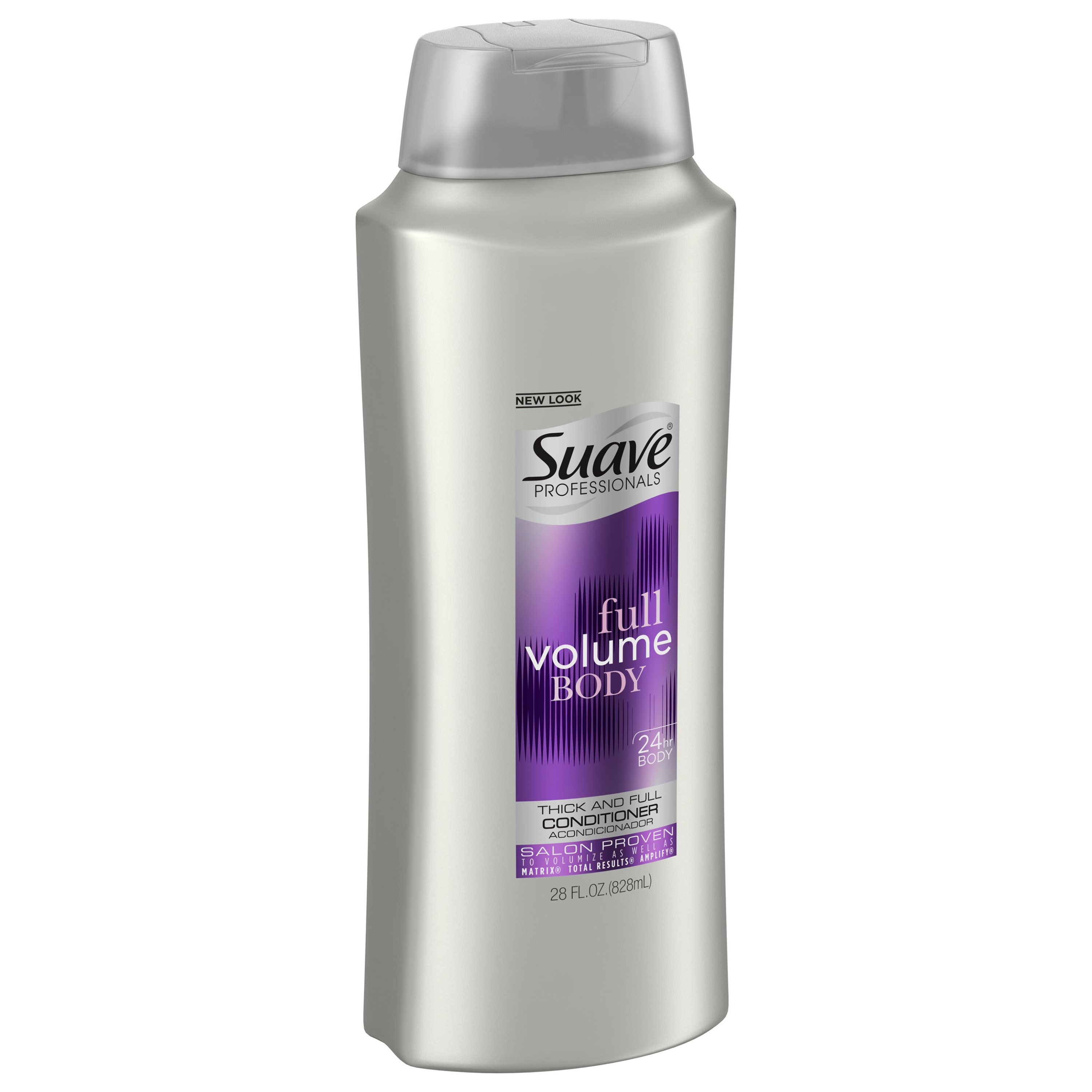 - Suave Professionals Volumizing Shampoo and Conditioner add fullness and shine
