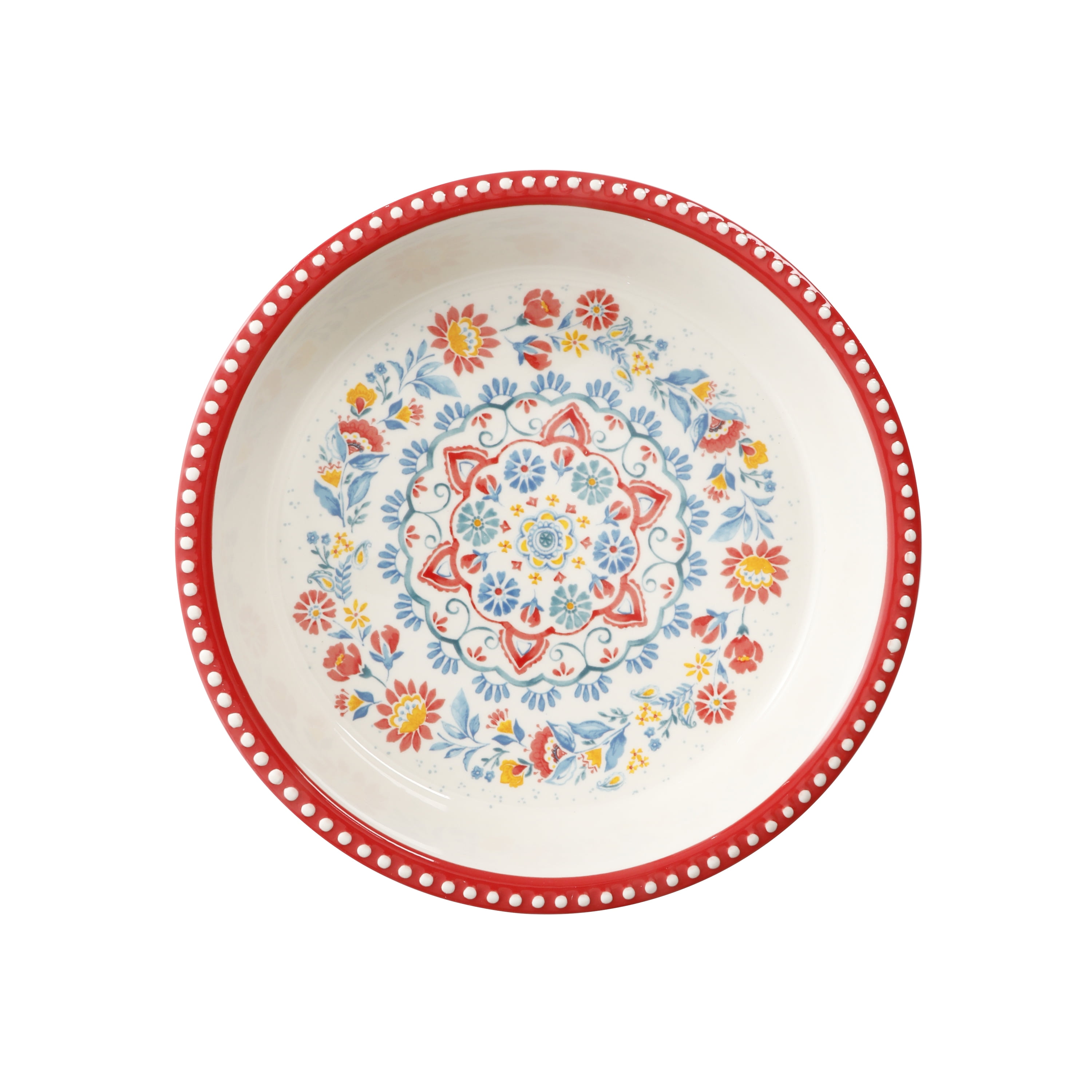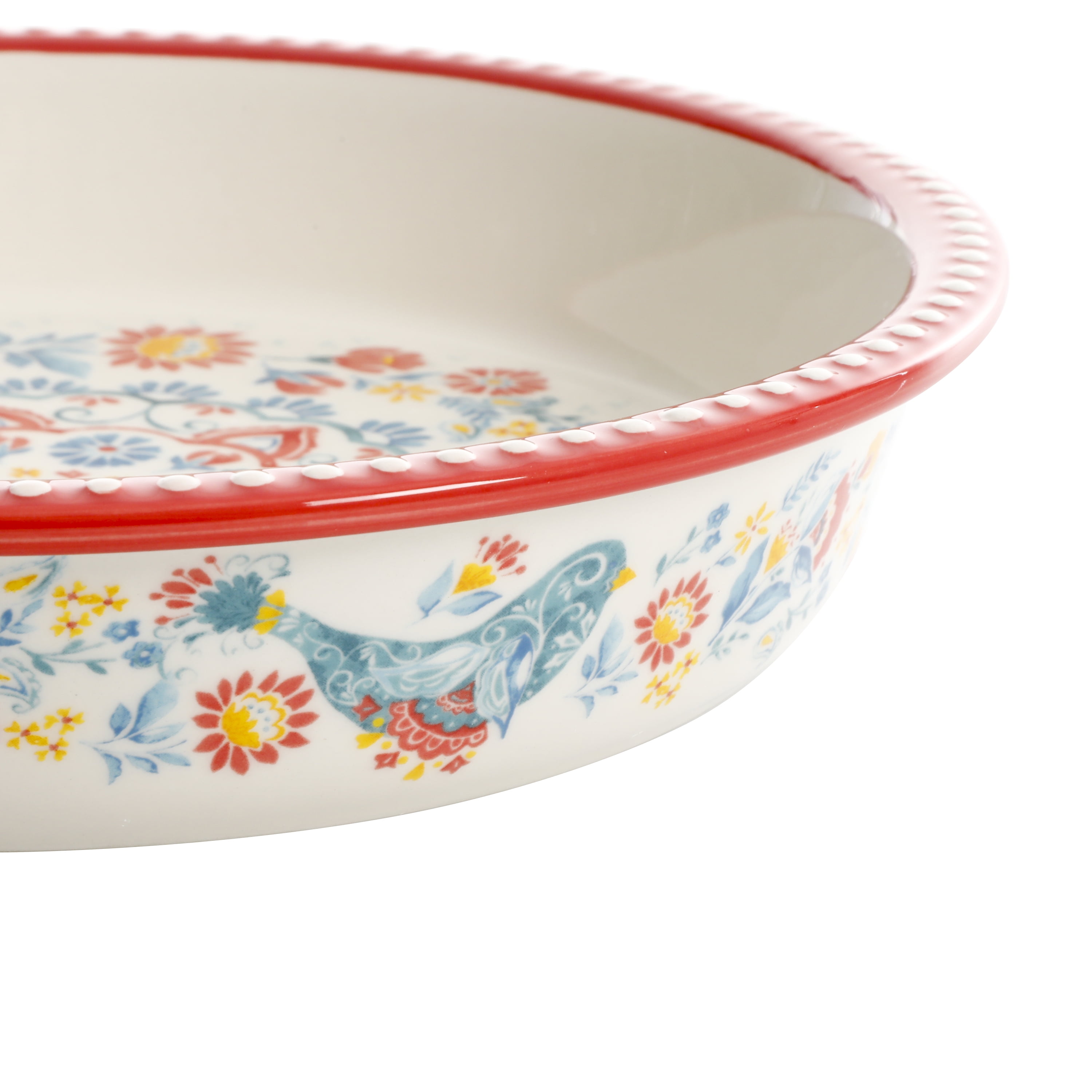 The Pioneer Woman Mazie 9-Inch Pie Pan adds a touch of country charm to any table. Perfect for crispy and delicious oven-to-table cooking. Bake and serve delicious desserts or savory meals to friends and family with this darling pie plate. A vibrant exterior with a vintage-inspired pattern makes whatever you’re serving up look amazing. Made of durable stoneware and measuring in at nine inches, this bakeware is conveniently dishwasher, microwave and oven safe. The stoneware ceramic construction ensures even heat retention to create delicious crusts and moist centers that are sure to please family and friends. As practical as it is beautiful, you’ll love baking any of Rae’s delicious pie recipes in this charming plate. Or serve up savory quiches and other tasty bakes. Easily matches with other items in the Pioneer Woman Collection. Mix and match to create a colorful spread on any table. The Pioneer Woman Mazie 9-Inch Pie Pan is a must-have addition to your bakeware collection Meet Reed: Reed Drummond is a NY Times Best Selling Author, TV personality, social media phenom, and the woman behind the popular Pioneer Woman lifestyle blog that started it all. She’s also a lover of butter, basset hounds, Ethel Merman, her hunky, cowboy husband Ladd, and their four kids. Her casual country style and delicious recipes have made her a go-to for all things cooking and entertaining.