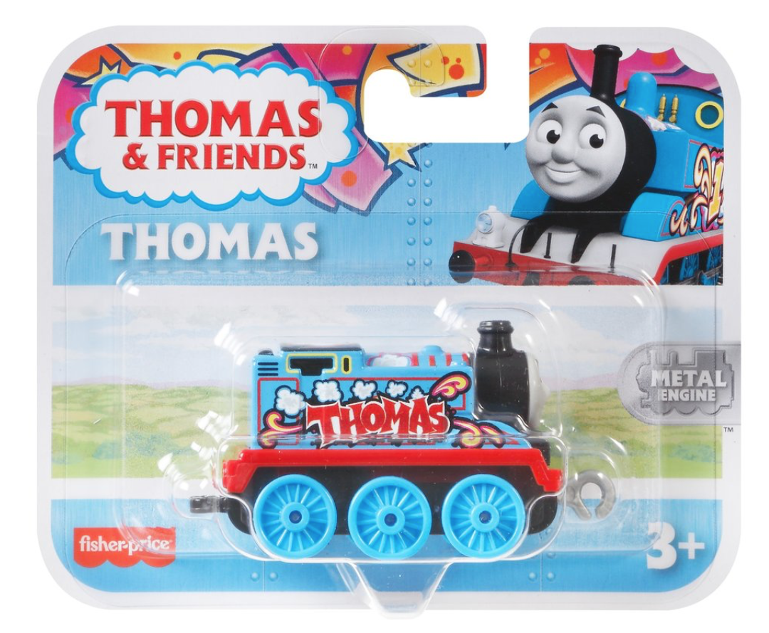 Preschool kids can create their own exciting railway adventures across the Island of Sodor and beyond with this Thomas & Friends Thomas push-along train engine from Fisher-Price. Styled with a fun graffiti theme, this push-along Thomas engine comes with plastic connectors to connect to other Thomas & Friends engines, tenders or other vehicles. Push this vehicle along any Thomas & Friends™ track for more racing play! (Track sets sold separately and subject to availability