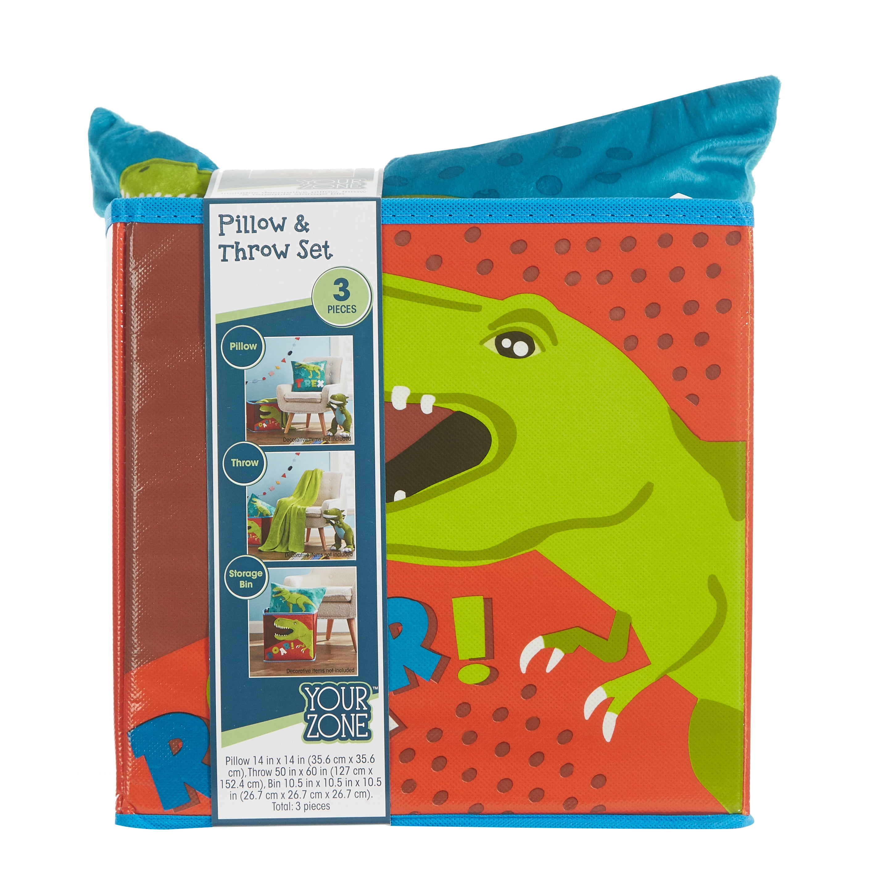 Bring on the Your Zone Lounge Life! Add a little excitement with the Your Zone Rainbow Sleepover Combo Set which includes a collapsible storage cube, Super Soft Plush Throw and BONUS decorative pillow! The Your Zone Sleepover Combo Set is the perfect gift or sleepover solution. The Your Zone Sleepover Combo Set includes a super soft 14" square decorative pillow, 50" x 60" embossed royal plush throw and 10.5" x 10.5" polyester canvas storage cube. The Your Zone Storage Cube is collapsible so it’s easy to assemble and disassemble at home. The Your Zone Embossed Throw and pillow is super soft for extra comfort while sleeping or relaxing. The Your Zone Sleepover Combo Set comes in a variety of patterns including Rainbow, Gaming, Unicorn and Dinosaur. The Your Zone embossed throw is machine washable and the storage cube/pillow are spot clean only. It’s a value you cannot beat – get yours today!