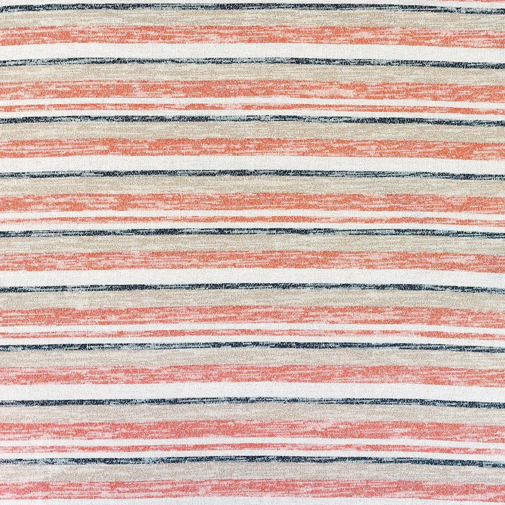 Vintage Coral Navy Multi Stripe Cotton Jersey Spandex Blend Knit Fabric – By The Yard
