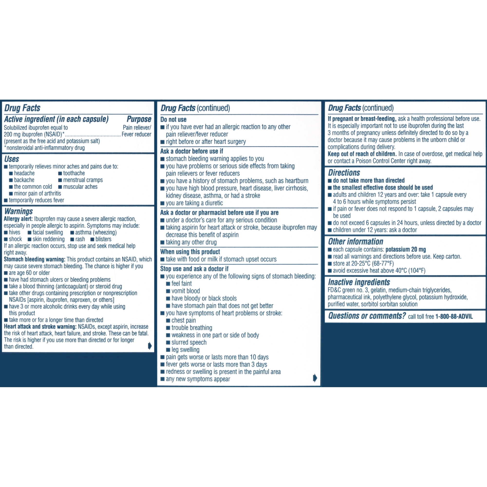 Advil Liqui-Gels Minis Pain and Headache Reliever Ibuprofen, 200 Mg Liquid Filled Capsules, 80 Count