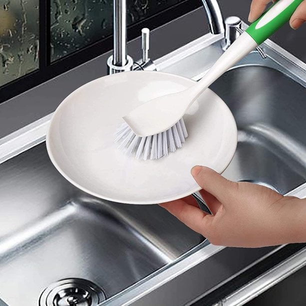 2 Pack Dish Brush with Handle, Household Kitchen Scrub Brushes for Cleaning, Dish Scrubber with Stiff Bristles for Pots, Pans, Sink