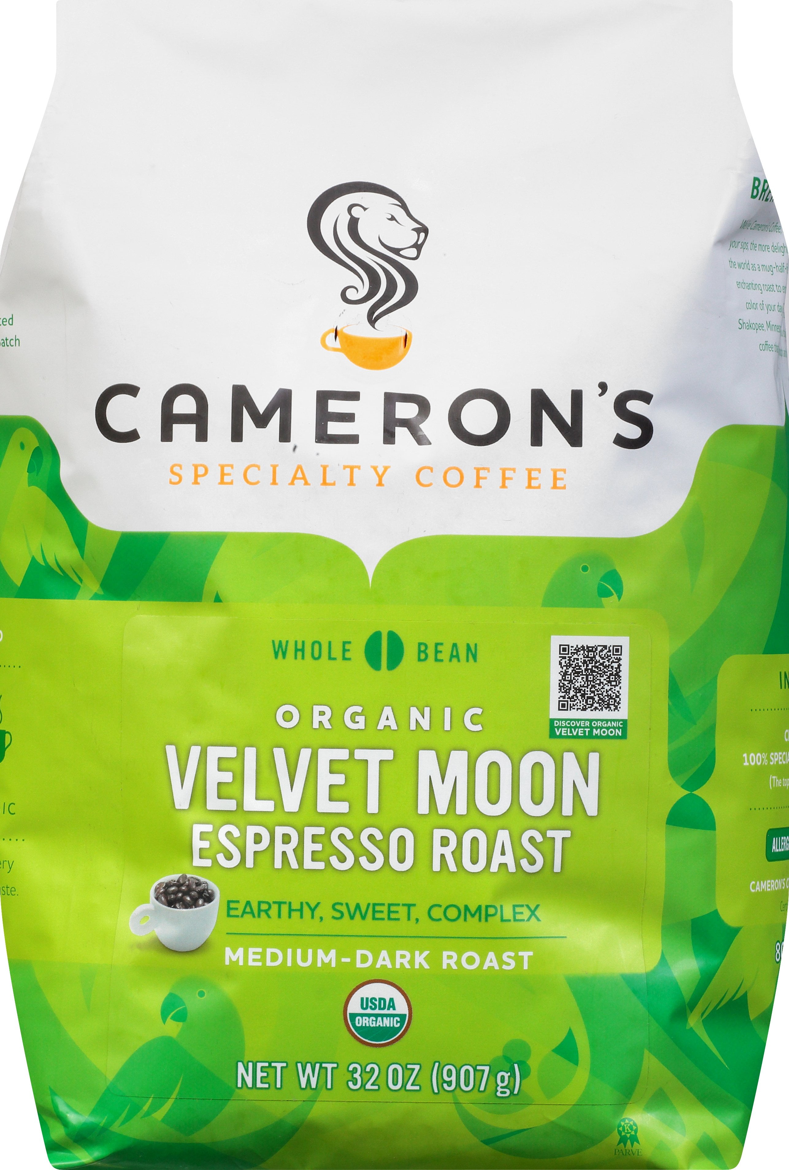 Camerons Organic Velvet Moon Whole Bean Coffee, 32 Ounce Bag