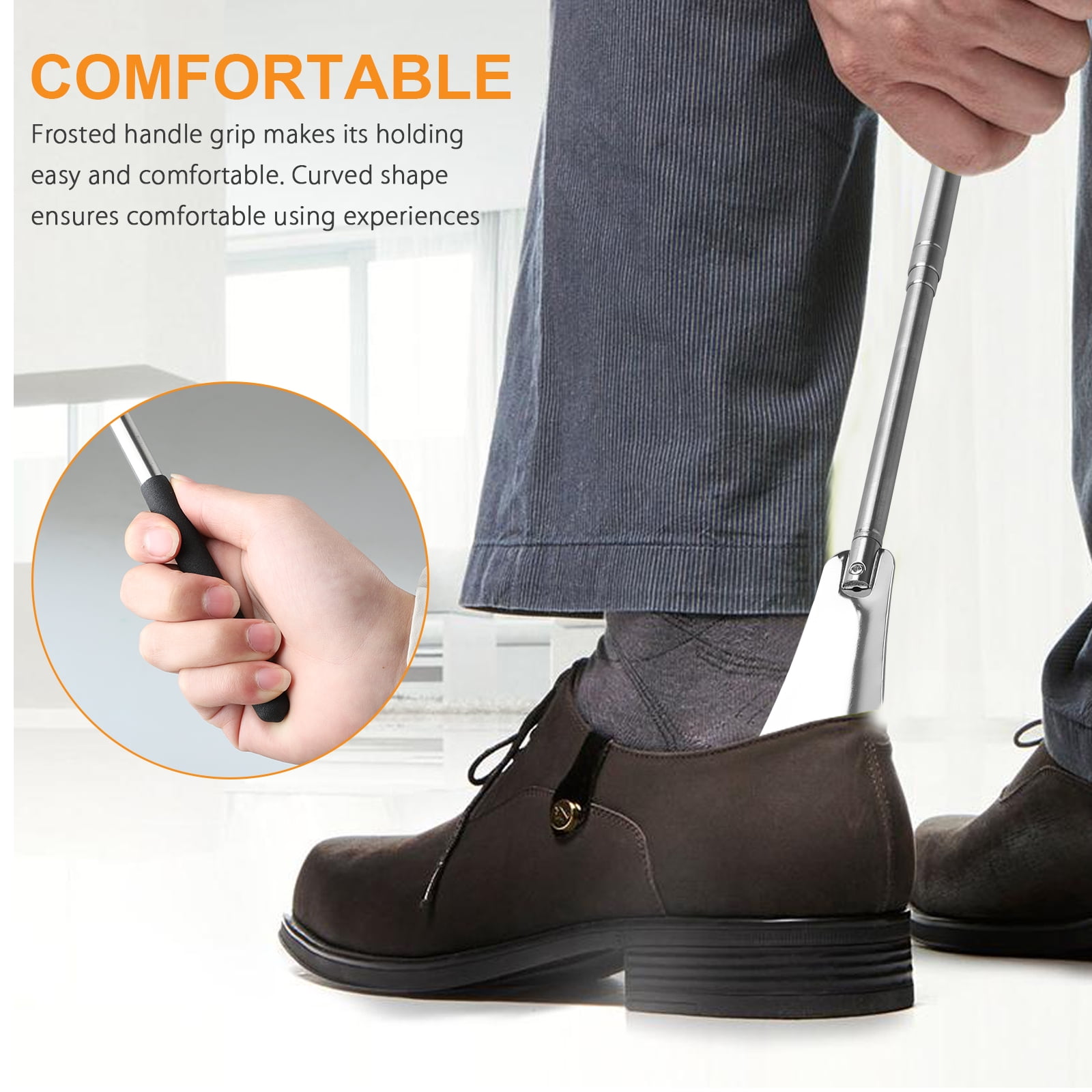 TSV Shoe Horn, Adjustable Long Handle Metal Shoe Horn, 25inch Handled Extended Telescopic Shoe Horn with Frosted Grip Handled, for Men Women Seniors Home Travel