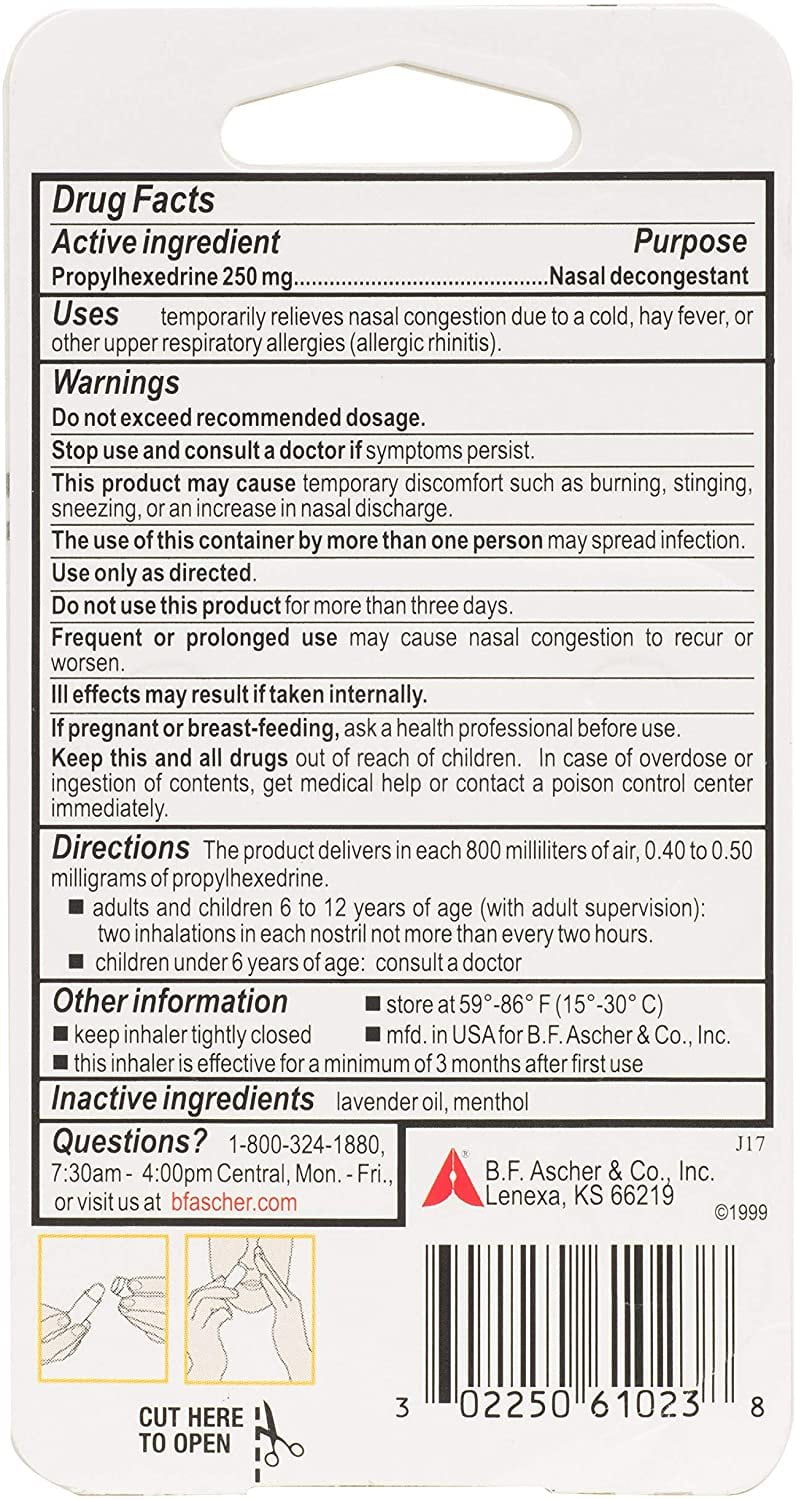 Benzedrex Nasal Decongestant Inhaler With Medicated Vapors, 6-Pack