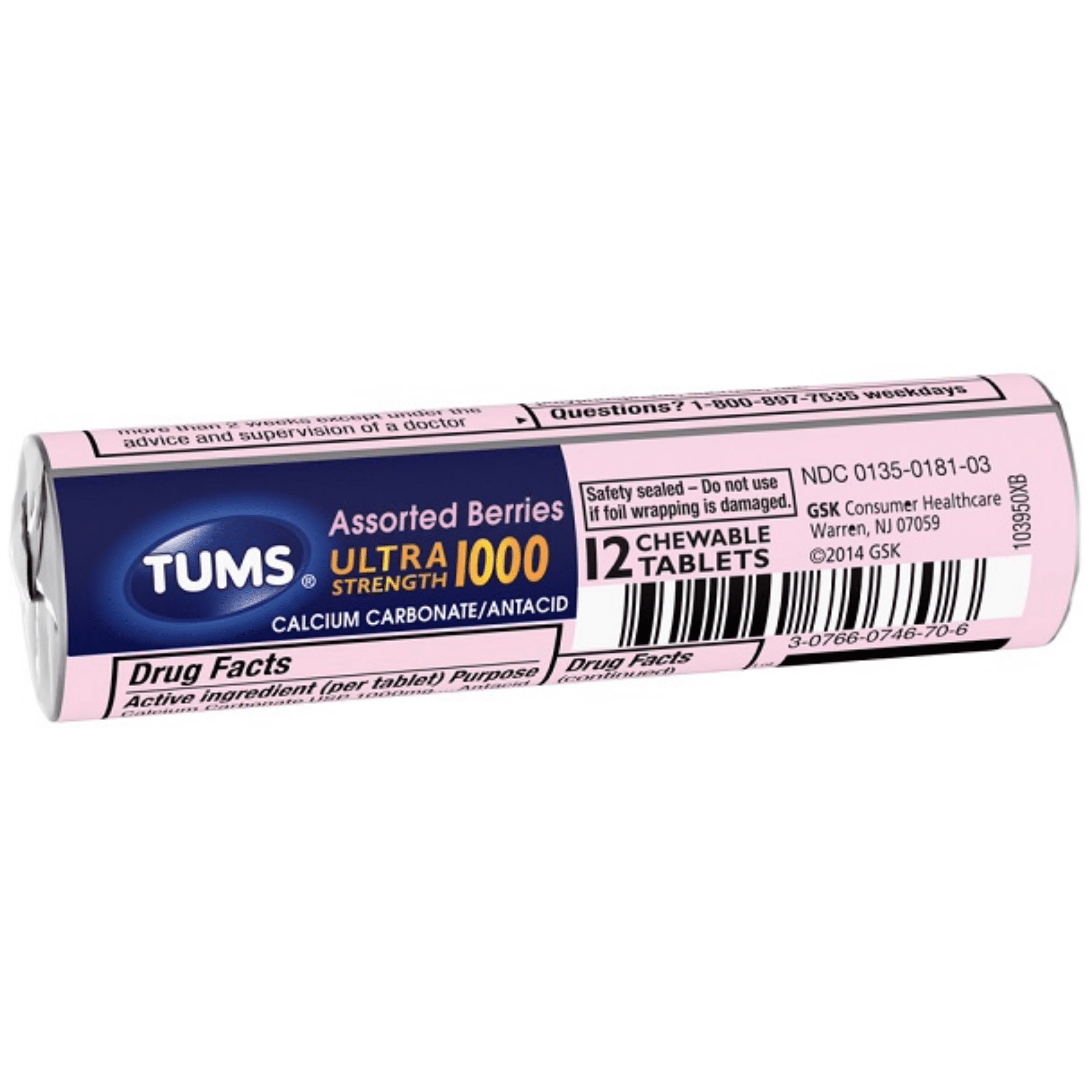 Tums Ultra Strength 1000 Assorted Berries Antacid Chewable Tablets for Heartburn Relief, 12 Tablets Each Roll,(4 Pack)