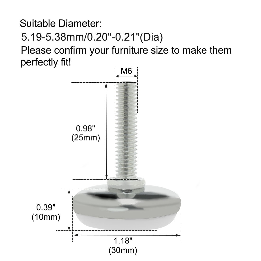Furniture Levelers, 11mm to 25mm Adjustable Height M10 x 25mm Threaded, 4Pcs
