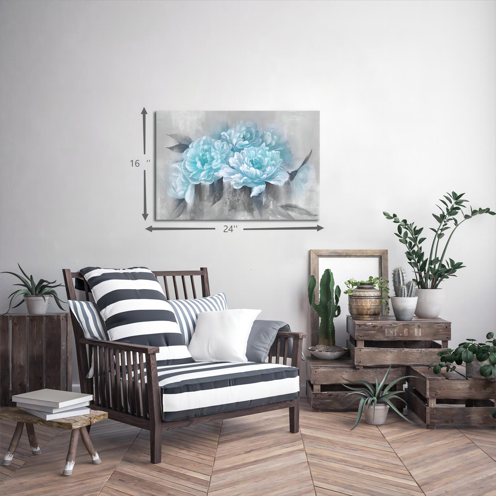 Visual Art Decor Canvas Wall Art Blue Elegant Retro Flower Modern Home Decor Stretched and Framed Ready to Hang 16’x24′