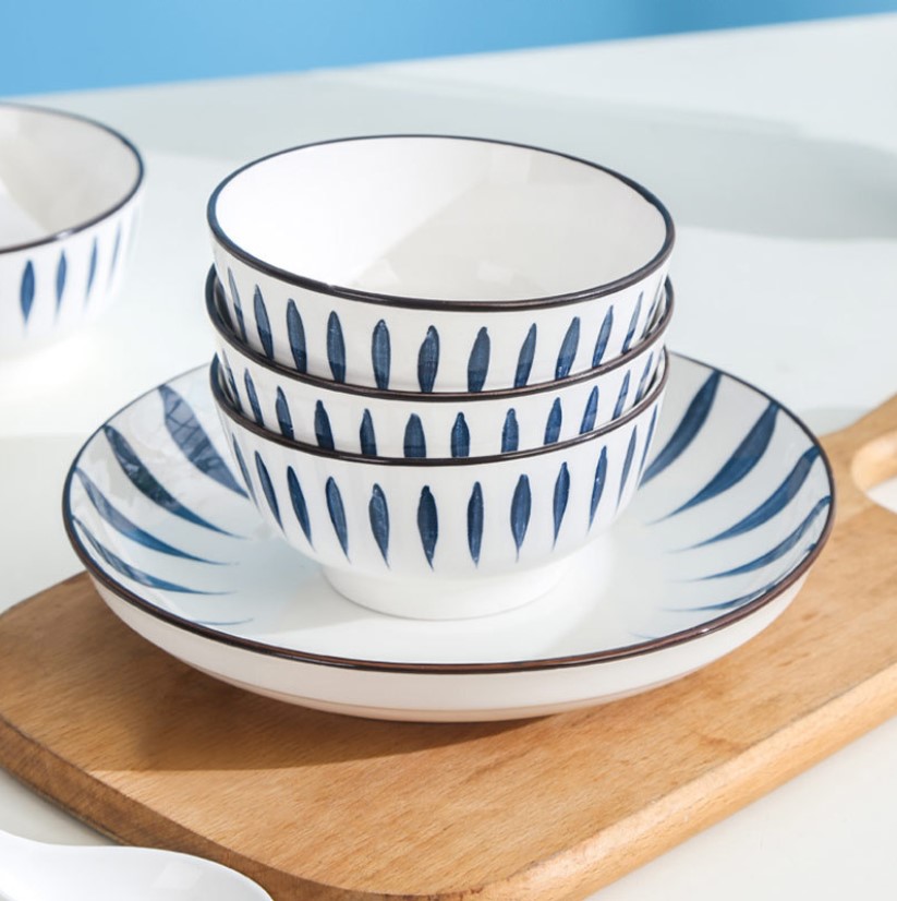 16 PCS Porcelain Kitchen Dinnerware Set with 4 Plates(8′), 6 Bowls(4.5′) and 6 spoons